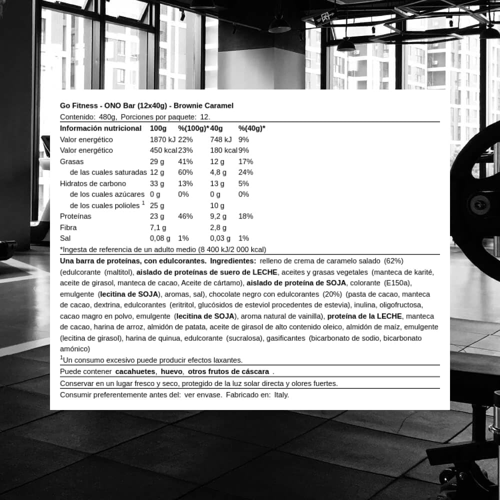 GoFitness Nutrition ONO Bar Brownie Caramel Flavor – 12x40g Pack – High Protein Energy Bar for Fitness, Muscle Recovery, and Healthy Snacking