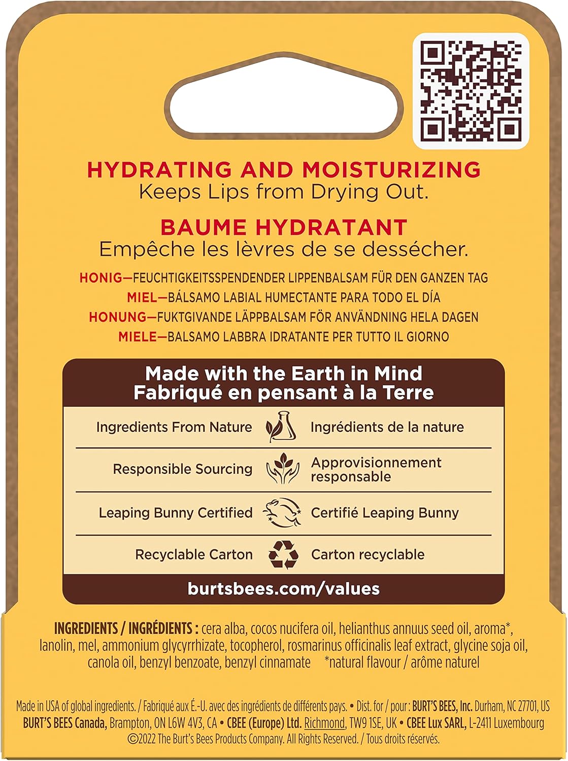 Honey Moisturizing Lip Balm Blister by Burts Bees for Unisex - 0.15 oz Lip Balm