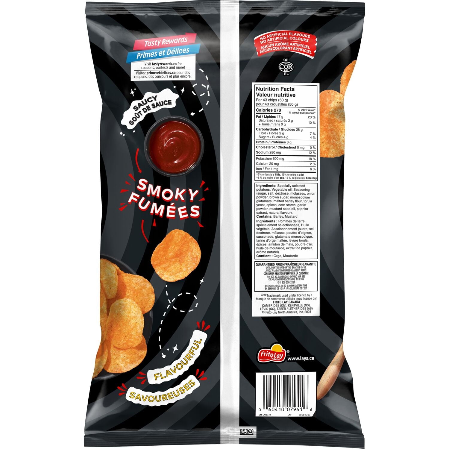 With a secret blend of flavourful barbeque spices and famous fresh taste, Lay's Bar-B-Q flavoured potato chips are a tasty tribute to the Canadian backyard grilling tradition! These crispy chips have a sweet and smoky flavour that’s both fresh tasting and inviting whether you savour the flavour as a side to burgers hot off the grill, or embrace spontaneity by crumbling them into a chicken salad to add some crunch and fun. The sweet and smoky taste of Lay's Bar-B-Q flavoured potato chips offers the perfect, iconic flavour to satisfy all your snacking needs. Snack time just isn’t complete without the timeless taste of Lay’s potato chips! With many flavours to choose from, Canadians have been enjoying Lay's products for many years. Lay’s potato chips are made with quality potatoes. Simple, wholesome and real. After carefully washing, peeling and slicing the potatoes, we cook them until they are perfectly crispy, creating the wonderful potato chips that Canadians know and love.