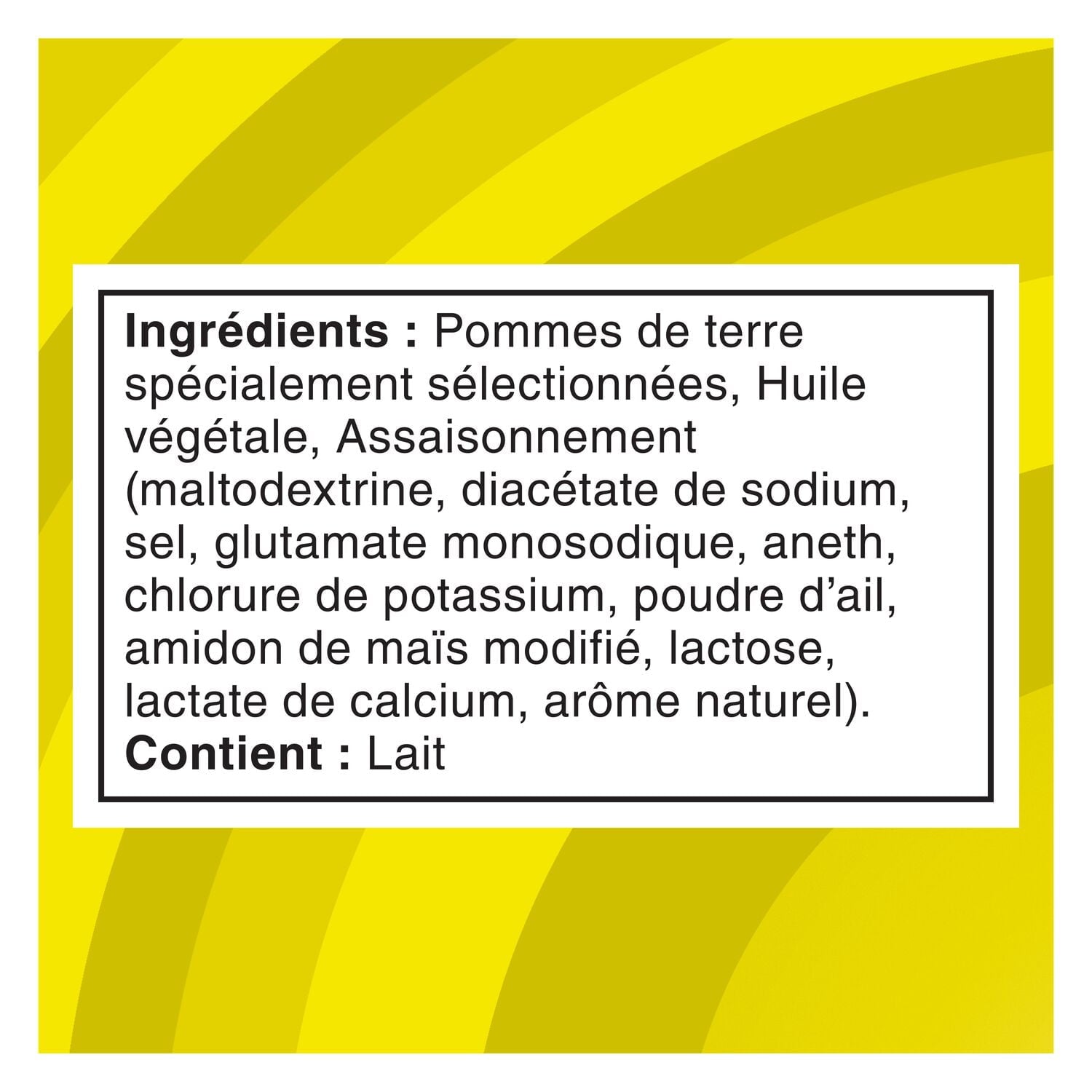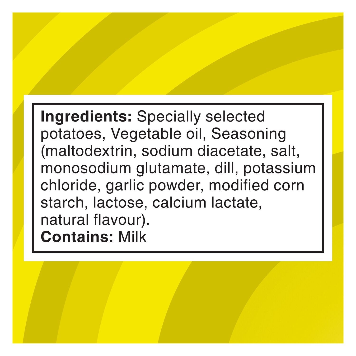 Why are Lay's Dill Pickle flavoured potato chips a true taste tradition? Because Canadians love the tangy taste of Dill Pickle and the fresh taste of Lay's potato chips! Your taste buds will dance for the undeniably delightful and refreshing hint of dill hidden in every crunchy bite. It’s a ‘Dill-icious’ flavour Canadians love! Snack time just isn’t complete without the timeless taste of Lay’s potato chips! With many flavours to choose from, Canadians have been enjoying Lay's products for many years. Lay’s potato chips are made with quality potatoes. Simple, wholesome and real. After carefully washing, peeling and slicing the potatoes, we cook them until they are perfectly crispy, creating the wonderful potato chips that Canadians know and love. Whichever flavour you choose, you can always count on our delicious potatoes, so you get that perfect, crispy chip every time you reach for Lay’s. Lay's Dill Pickle flavoured potato chips are no exception! Gluten-Free.