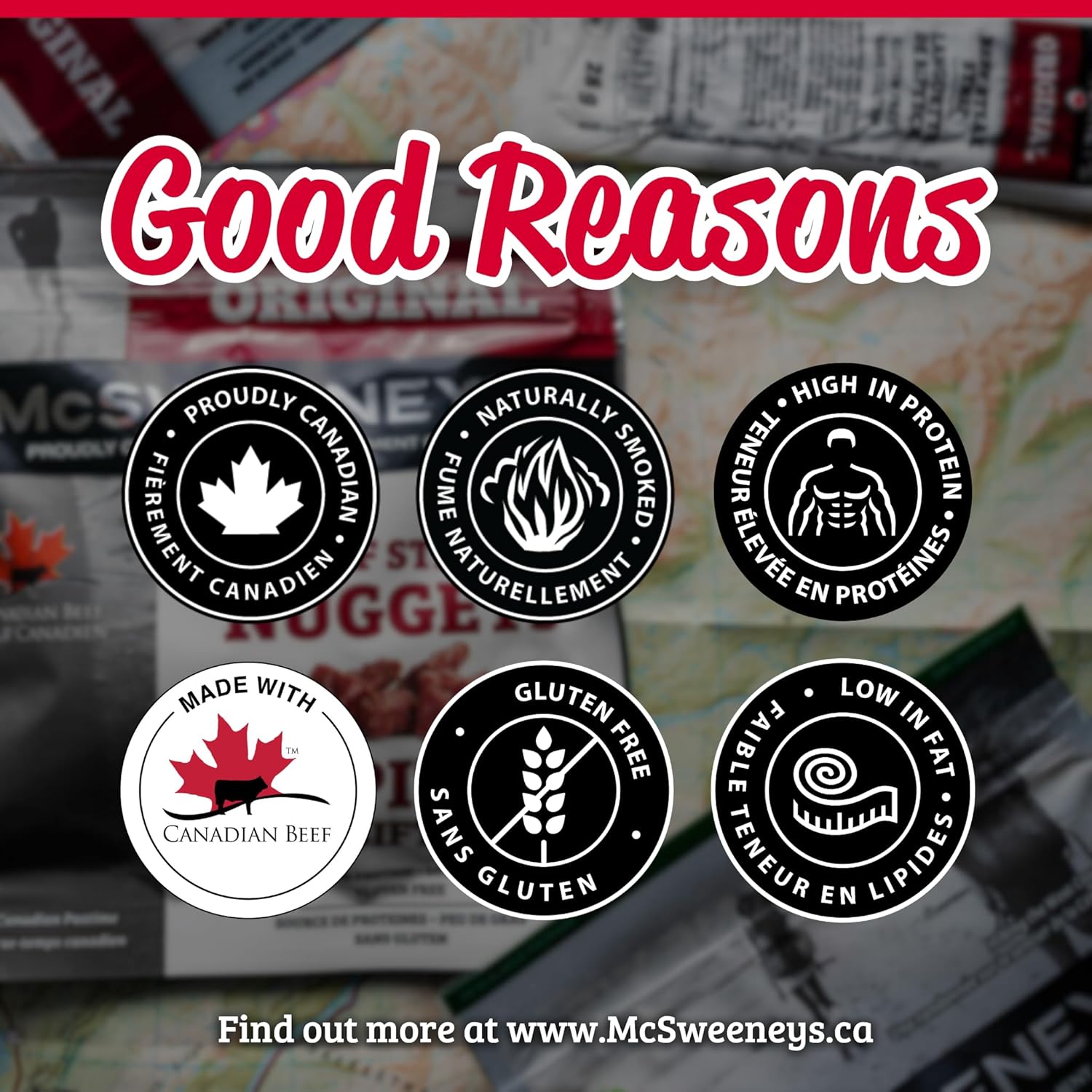McSweeney's Original Beef Steak Nuggets Box. 100% Made in Canada, High Protein Snacks, Gluten Free, Low Fat, Meat Snacks, Naturally Smoked, Shelf Stable, Bulk Case 85g (Pack of 12)