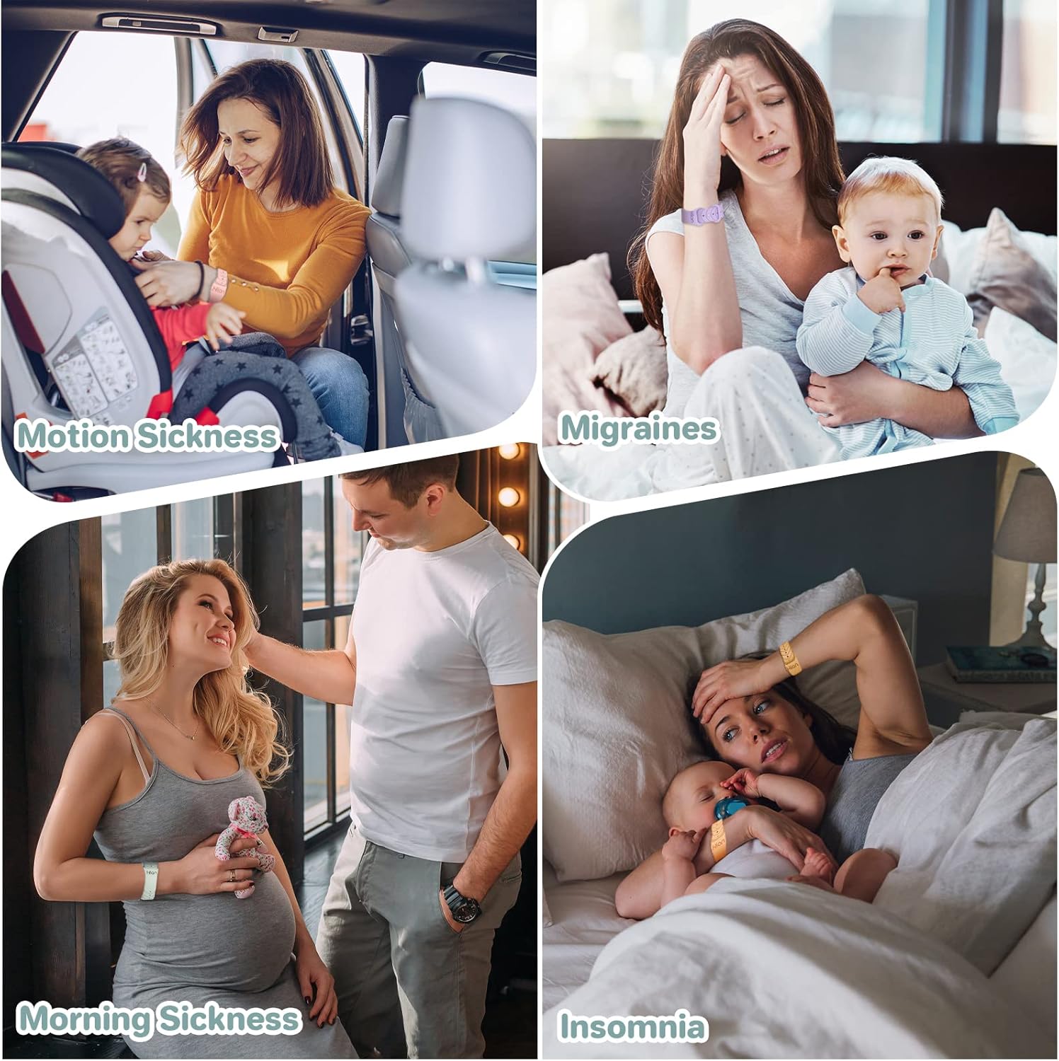 High-quality Materials: The nausea wristband is made of food-grade silicone material that is soft and comfortable to wear. It features a stylish clasp design and is lightweight and skin-friendly. The motion sickness bands has an ergonomic design that fits perfectly on your wrist. The white silicone acupressure bead is soft and firm, so it will not fall off even during exercise. The metal acupressure bead features magnetic therapy, making the motion sickness bands even more effective.Side Effect Free: Acupressure is a secure and gentle alternative therapy that can alleviate symptoms associated with various common disorders. The acupressure wristband stimulates four different pressure points (H7/P7/LU9/P6) located on the wrist, as indicated in the product instruction manual. It offers an effective solution to reduce or completely relieve natural symptoms such as motion sickness, morning sickness, anxiety, insomnia, stress, headache, nausea, and palpitations.Adjustable Motion Sickness Wristband: The adjustable acupressure wristband can be adjusted around the wrist like a watch, and the acupressure point can be adjusted for personalized comfort. For smaller wrist sizes, you can cut the excess strap at the marked grooves with cutters, if needed. This wristband is suitable for all people and is particularly ideal for adults, children, and pregnant women.Wristband for Motion Sickness Relief: This bands provides natural relief from nausea caused by air sickness, car sickness, sea sickness, morning sickness, chemotherapy, and post-operative conditions. Moreover, the acupressure bead stimulates a key pressure point on the interior of the wrist, helping to reduce common side effects of virtual reality such as nausea, dizziness, or headaches..Value Pack: You will get 1Pairs Motion Sickness bands With 2 metal acupressure bead+2 plastic acupressure beads.Experience a healthier, simpler life on the go and avoid ruining your travel or cruise ship experience due to sea sickness