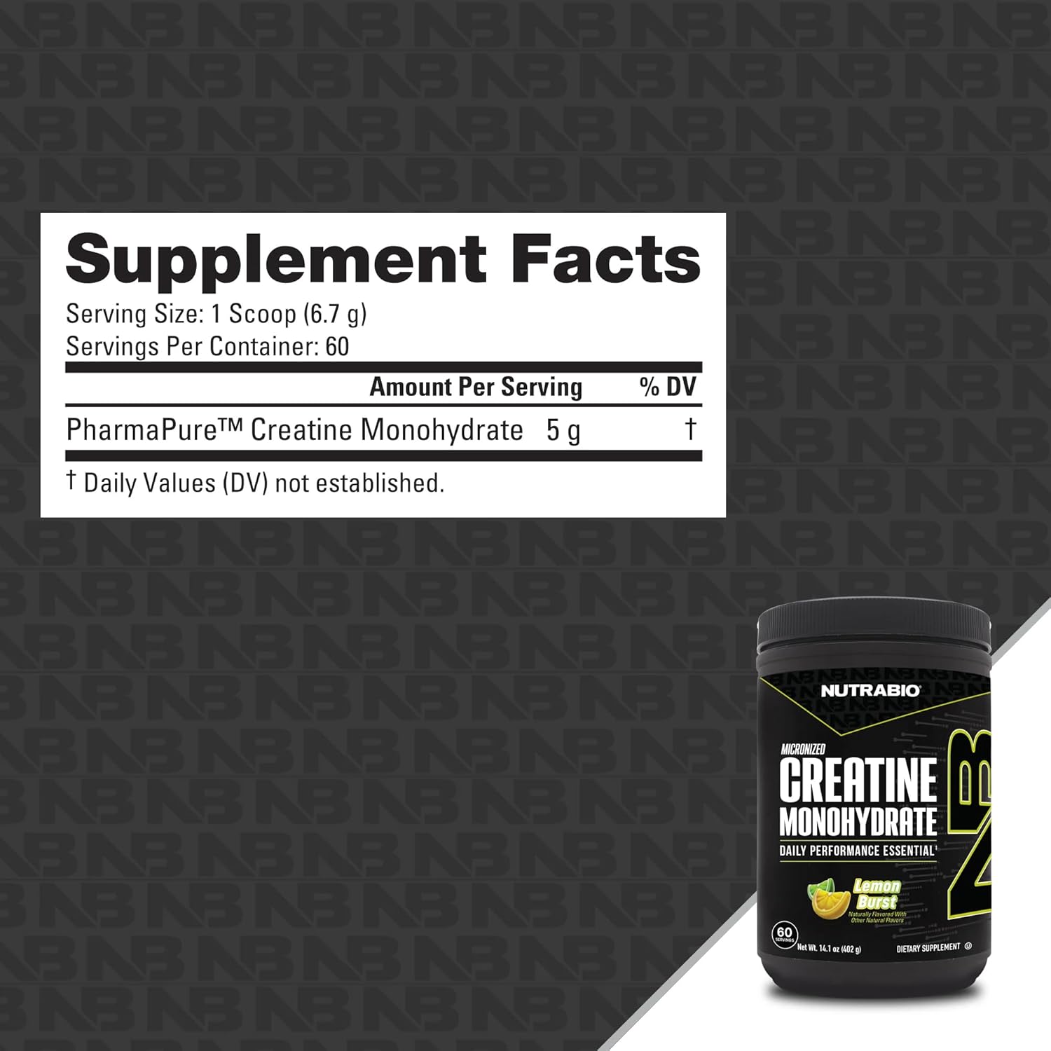 NutraBio Pure Micronized Creatine Monohydrate Powder Supplement, Lemon Burst, (402g)