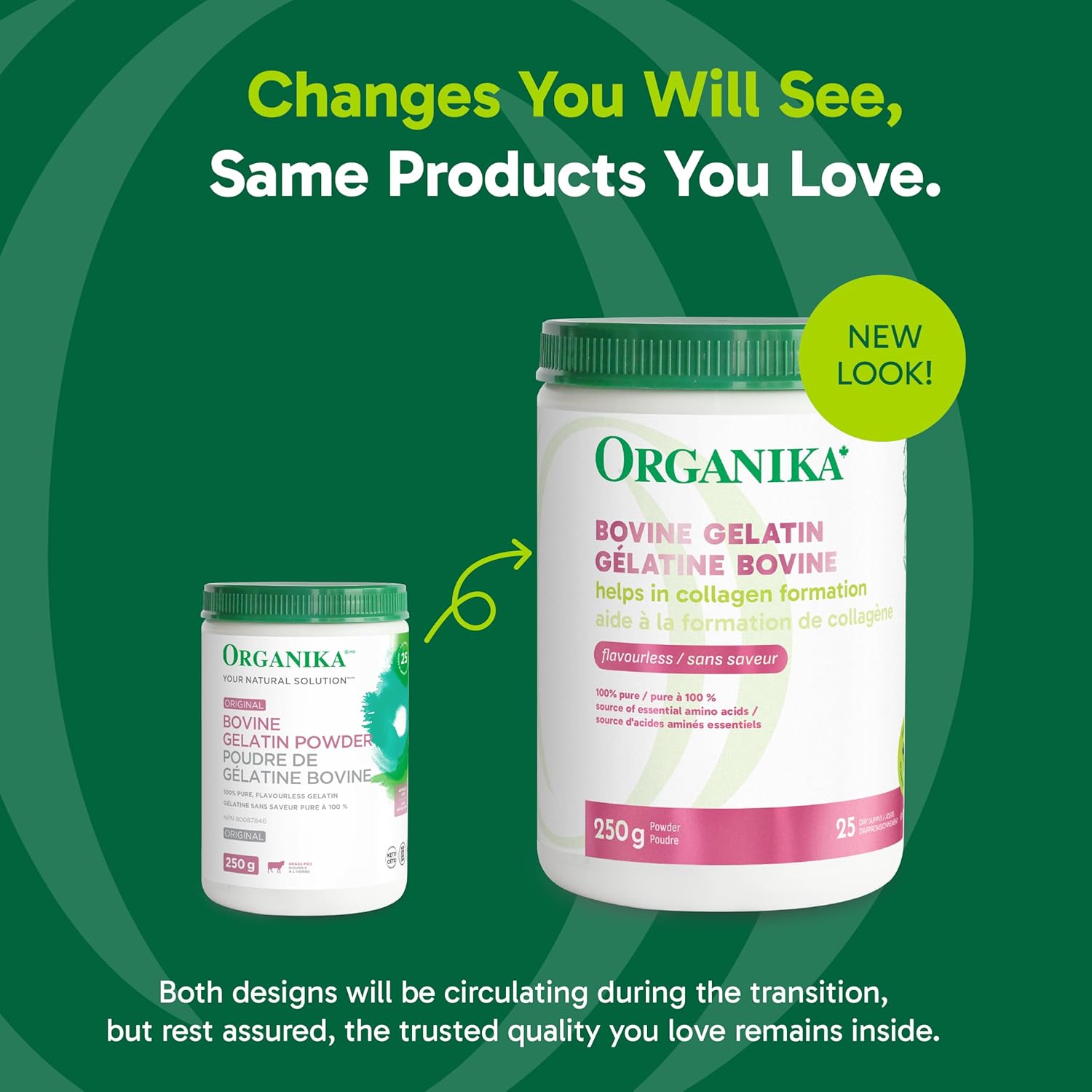 Organika Canadian-Made Bovine Gelatin (Unflavoured) - Collagen With 18 Amino Acids for Healthier Skin, Hair, Bones and Gut | Grass-Fed Source - 250g