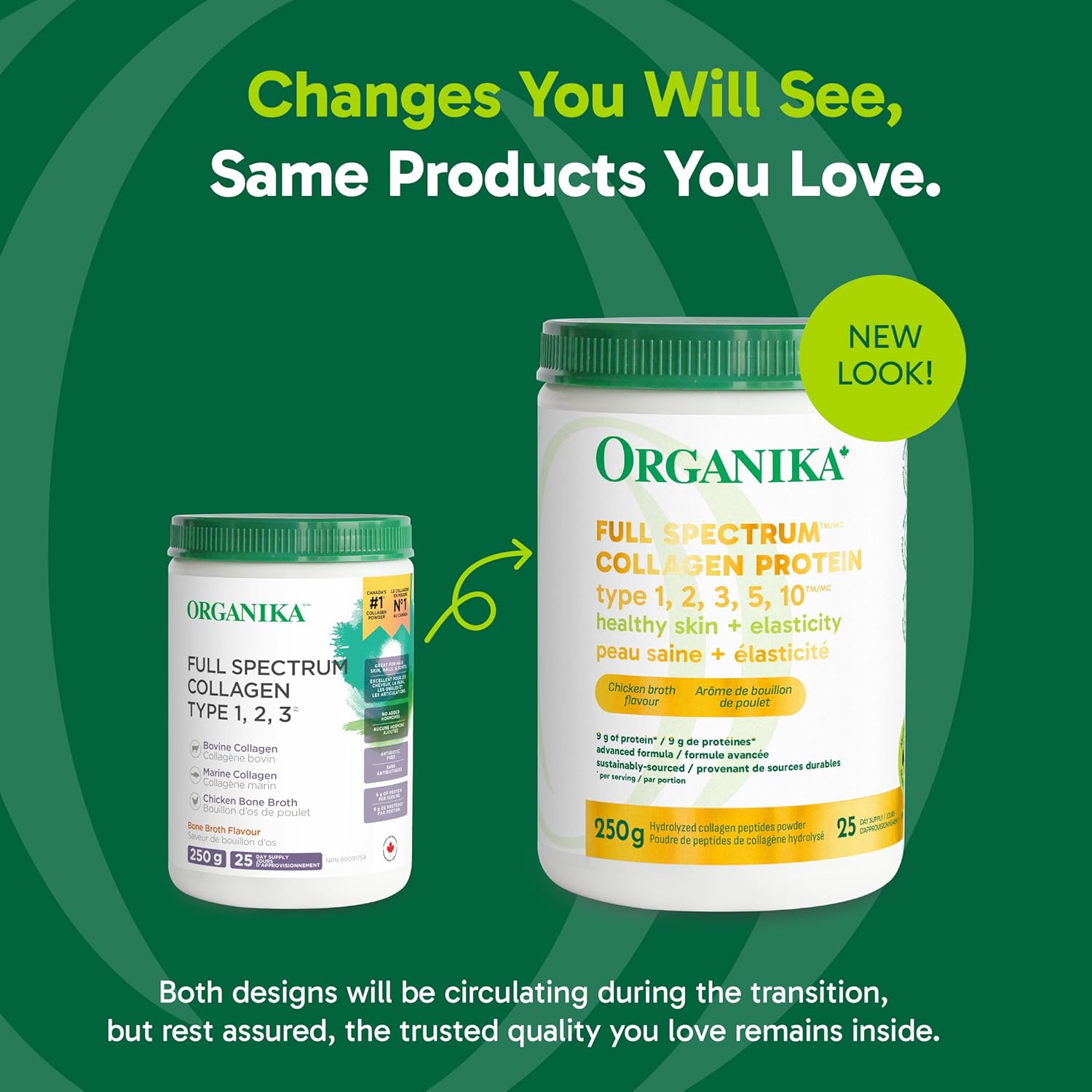 Organika Canadian-Made Full Spectrum Collagen - Type 1,2,3,5,10 - Complete Collagen Naturally Containing Hyaluronic Acid and Elastin for Healthier Hair, Skin and Joints Mild Chicken Broth Flavour 250g