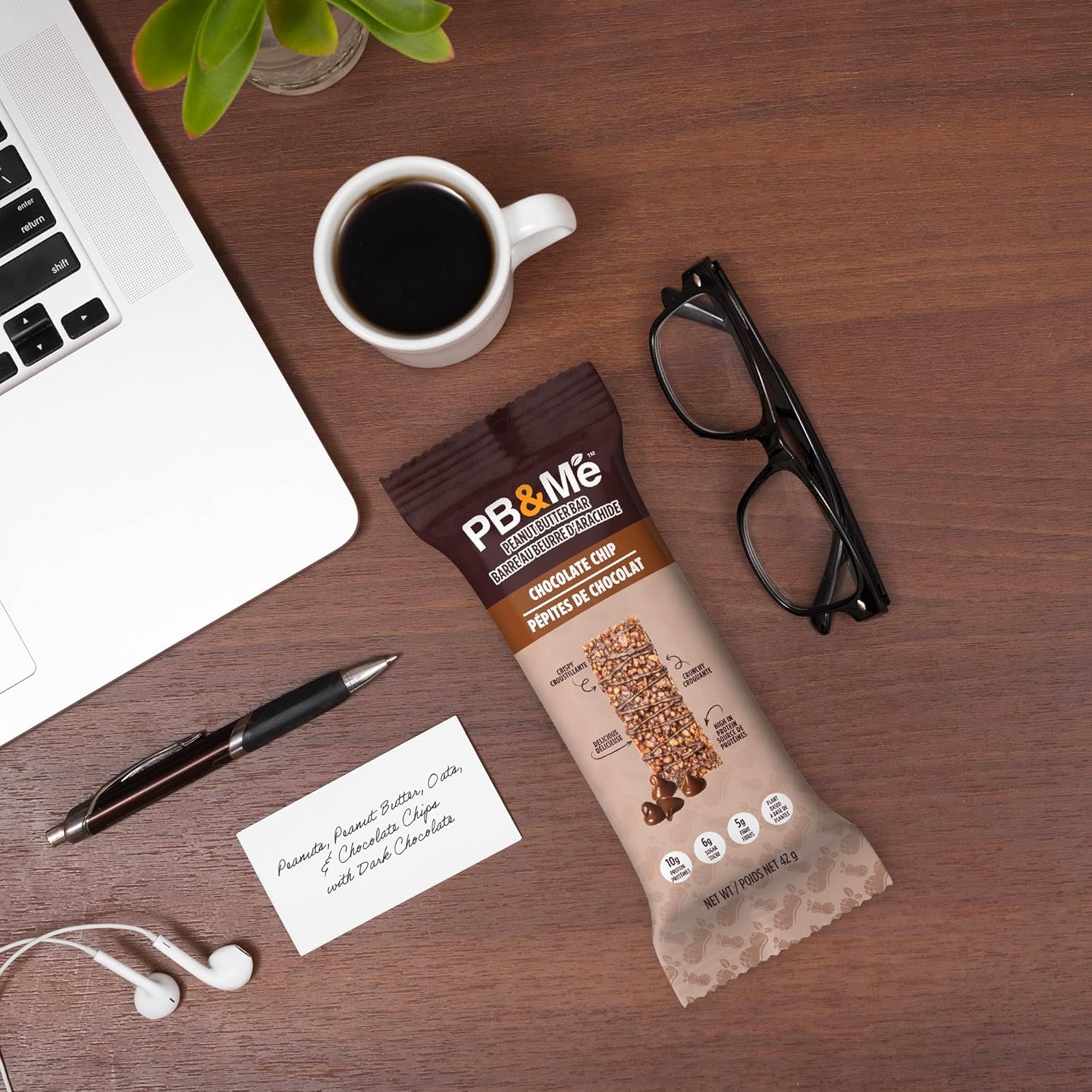 PB&Me Peanut Butter Protein Bars –Chocolate Chip, 10g Protein, Low Sugar, High Fiber, No Artificial Sweeteners or Preservatives, Meal Replacement, 5-Pack, Snack Bars for Work, Gym & Travel