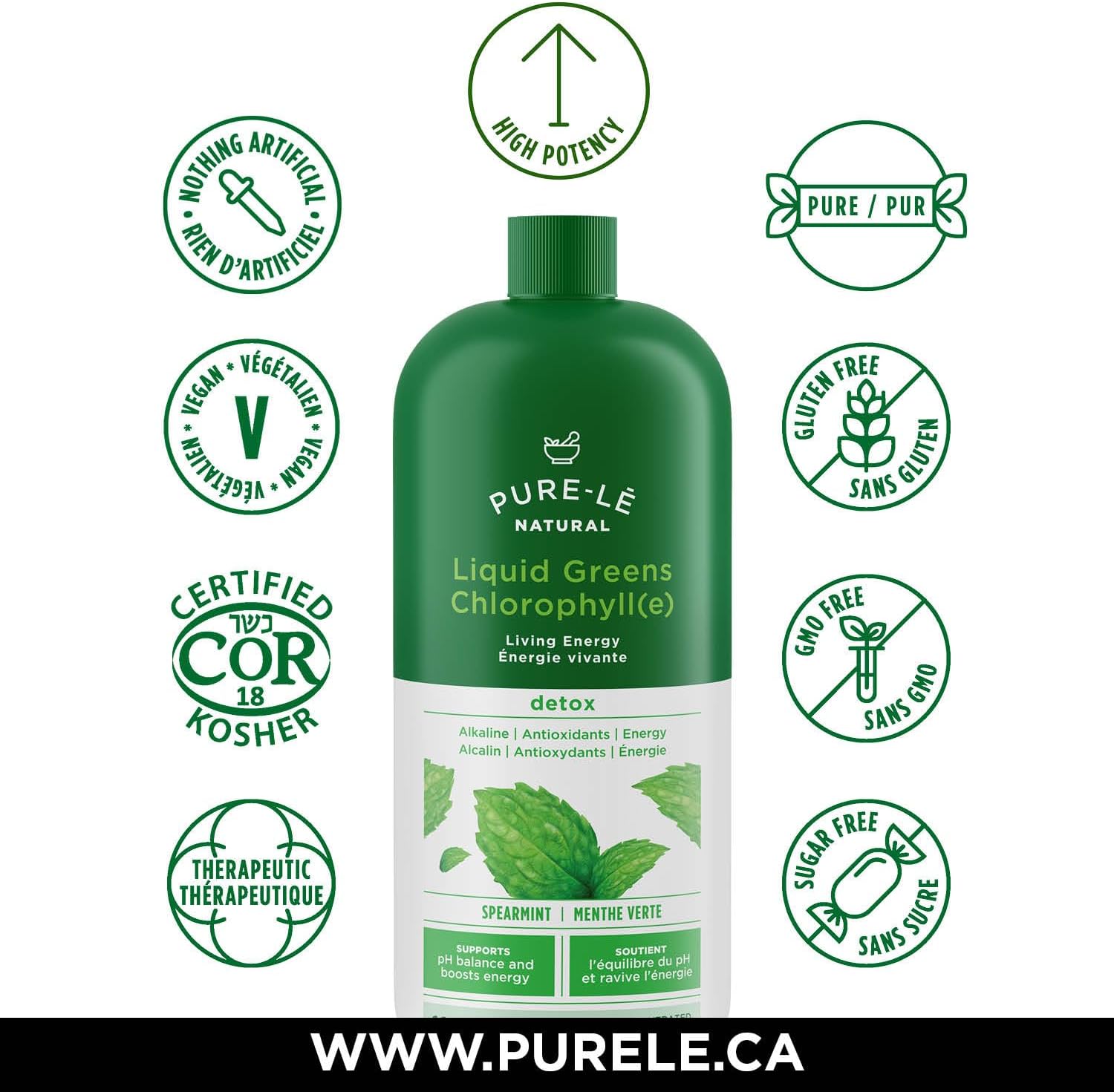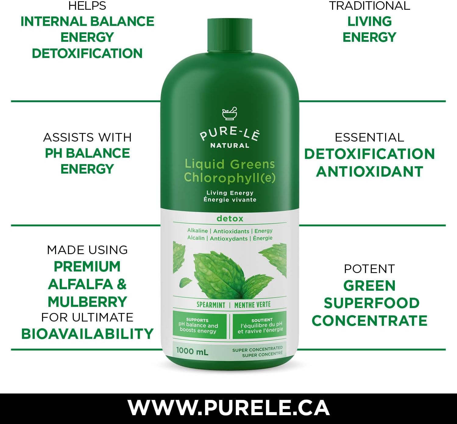 Pure-lē Natural Chlorophyll Liquid Greens | Organic (COR Certified), Gluten-Free, Vegan | Mint Flavor (1000 mL) – Natural Body Deodorant, Alkalizing & Antioxidant Support