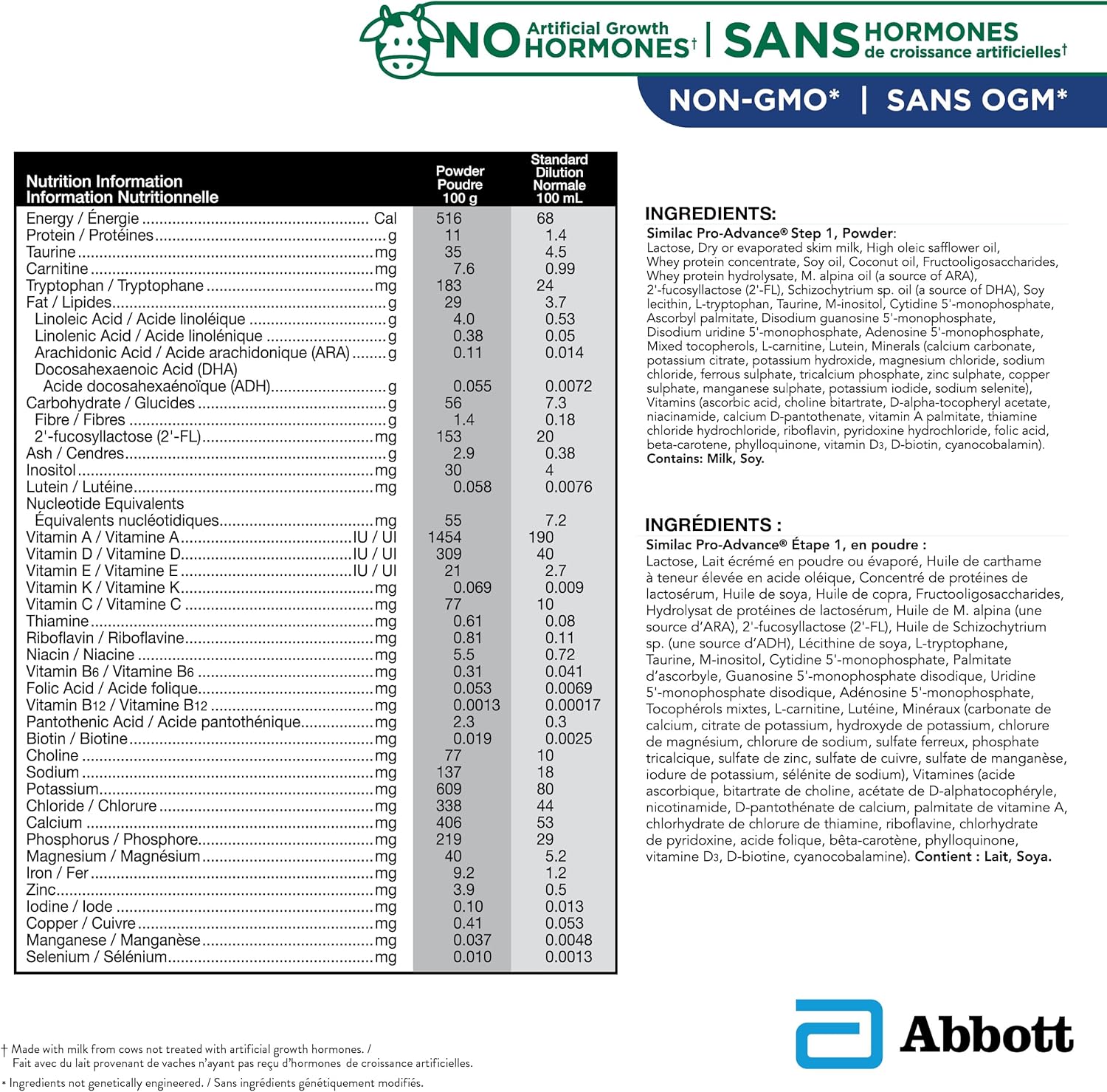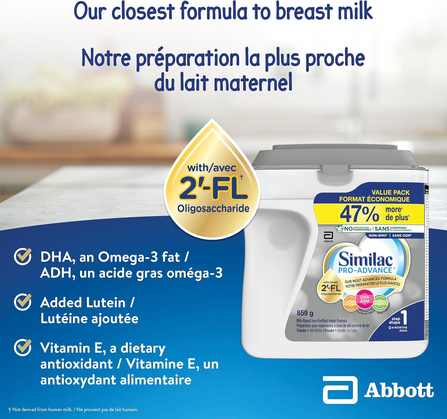 Similac Pro-Advance Step 1, Baby Formula, Our Closest Formula to Breast Milk with 2’-FL, Easy To Digest, 0+ Months, Powder, 859 g