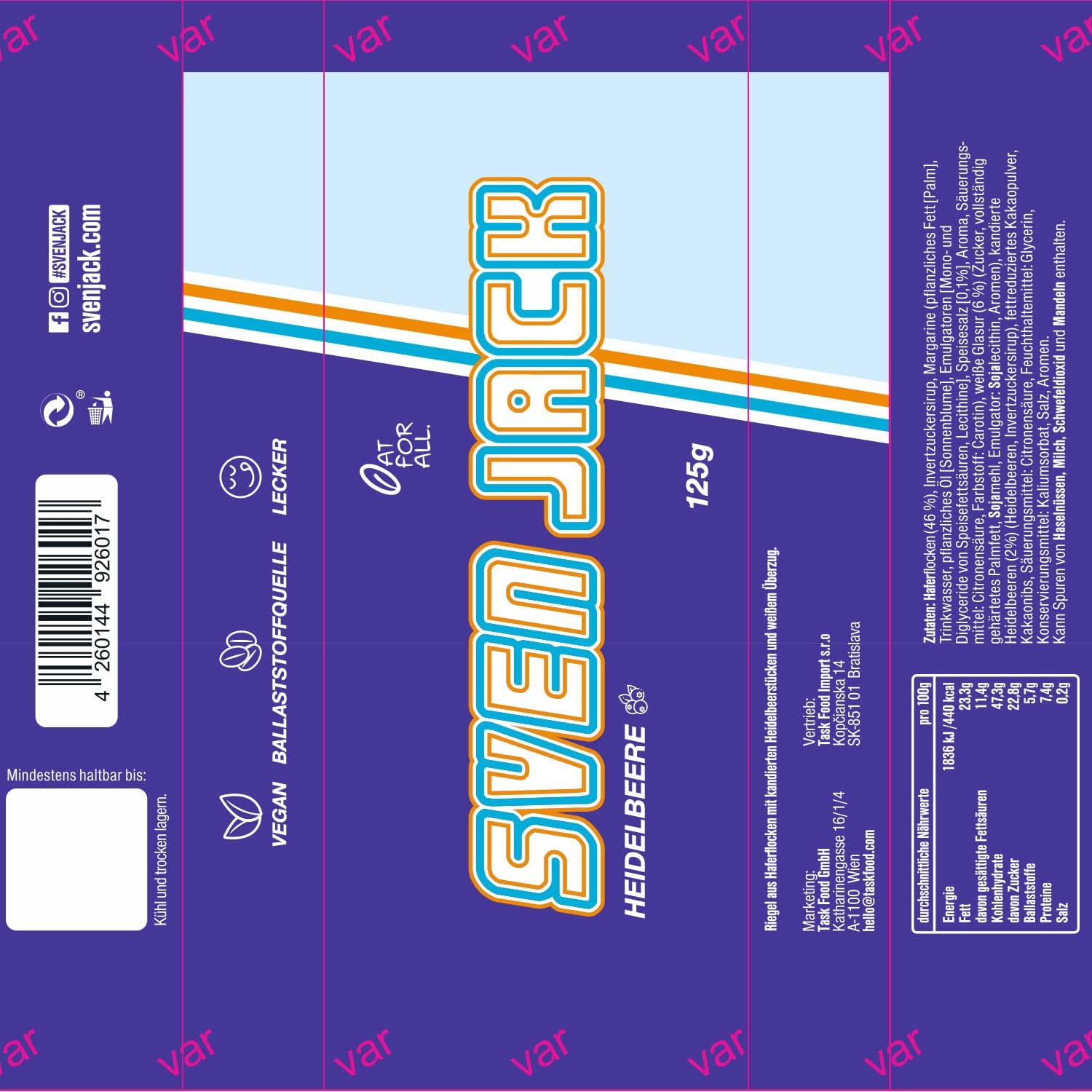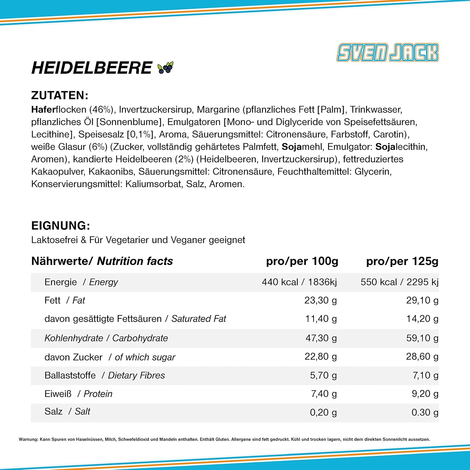 SvenJack Oat Bar Blueberry - 24 × 125g - Vegan Oatmeal Energy Bar with Blueberries, High‑Fibre, Low‑Sugar, Gluten‑Free Fruity Snack