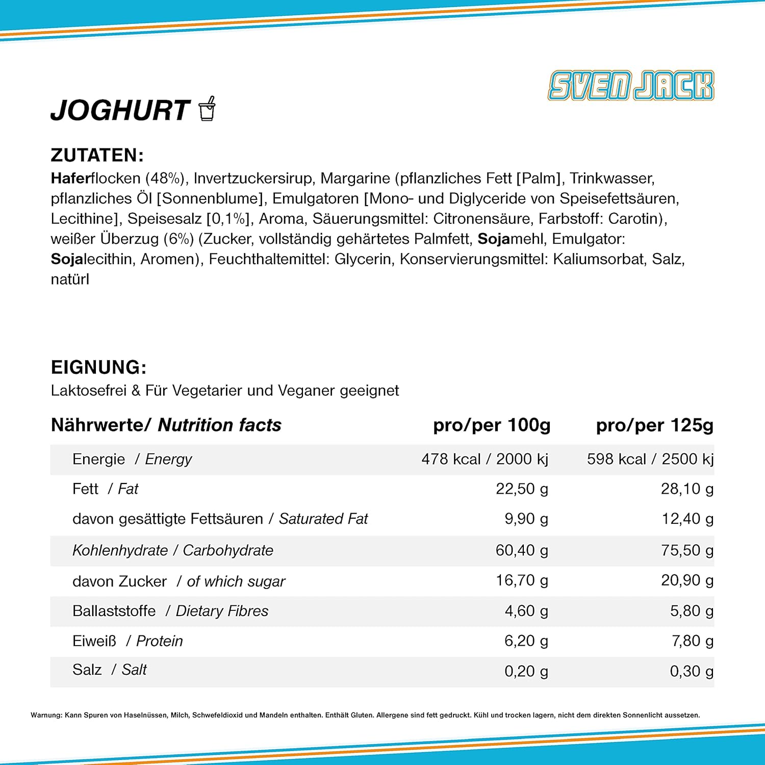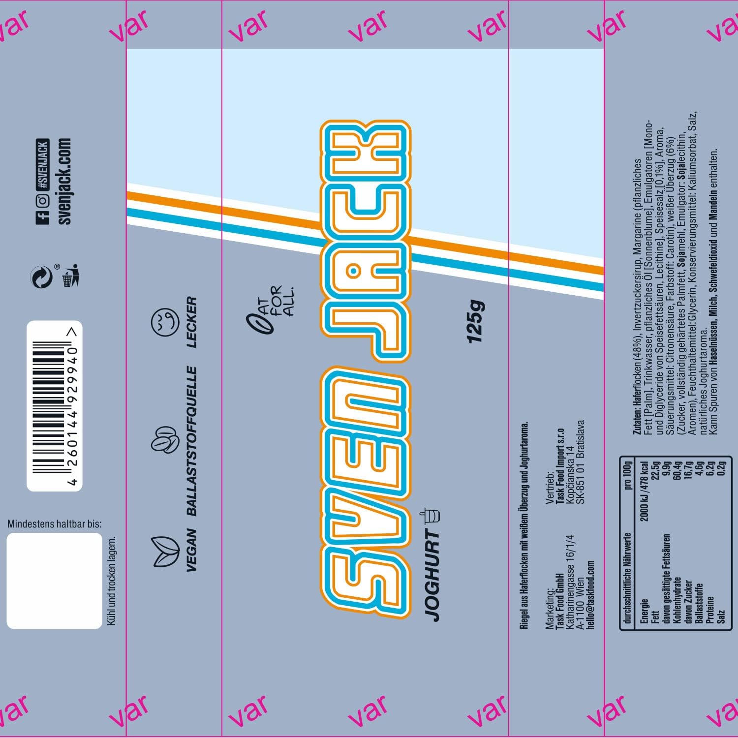 SvenJack Oat Bar Yoghurt - Pack of 1 × 125g - Original Oatmeal Energy Bar with Long‑Chain Carbohydrates, Less Sugar & More Energy for Everyday Use, Fitness Cake & Oatmeal Snack