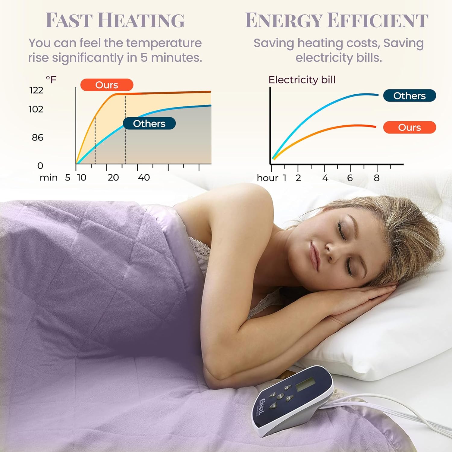 Thermee Micro Flannel Blanket Queen Size Heated Blanket with 10 Settings, Programable Heating Blanket, Luxuriously Soft Heated Throw Blanket, Rapid Heating Thermal Blanket, Warm Blanket - Lilac