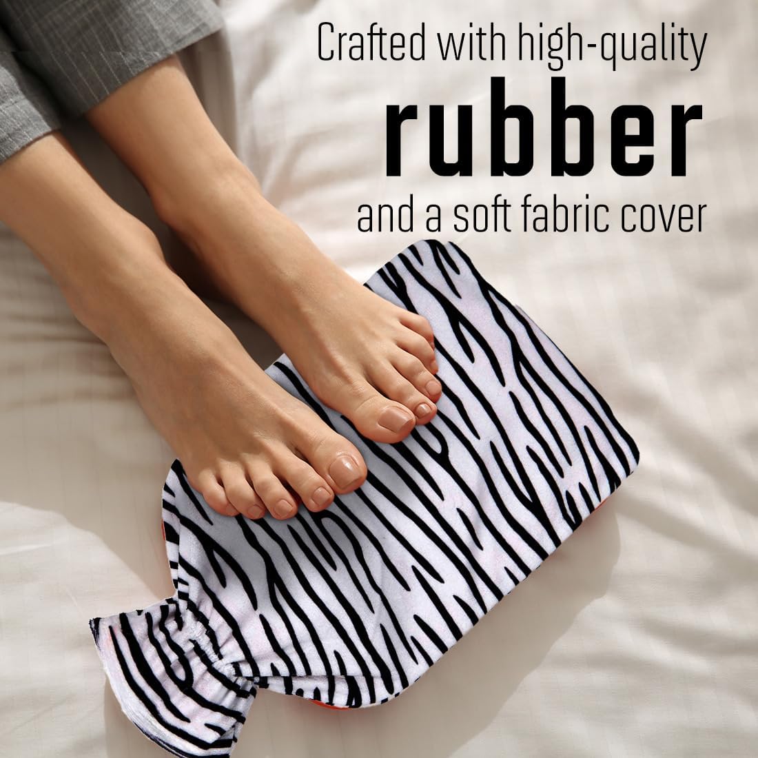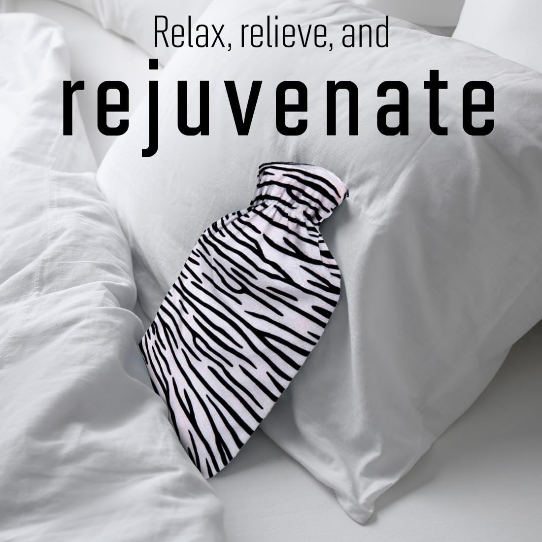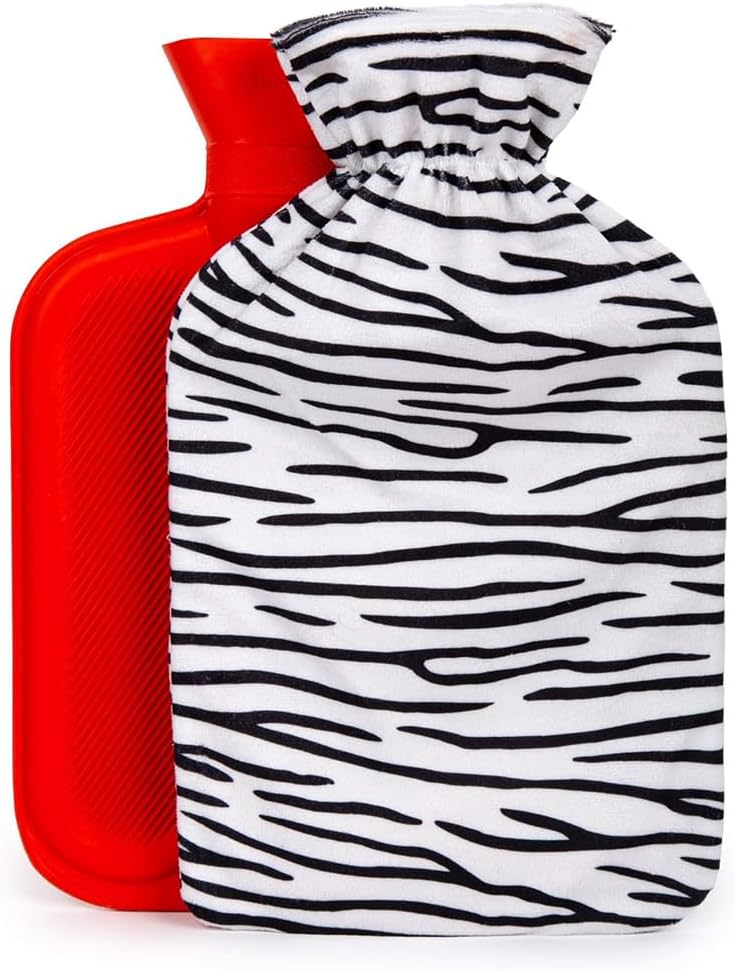 Bodico 热水袋带盖,橡胶加热垫,用于缓解痛经、肌肉疼痛等,秋冬季节热水袋,可爱斑马纹,1.7 升