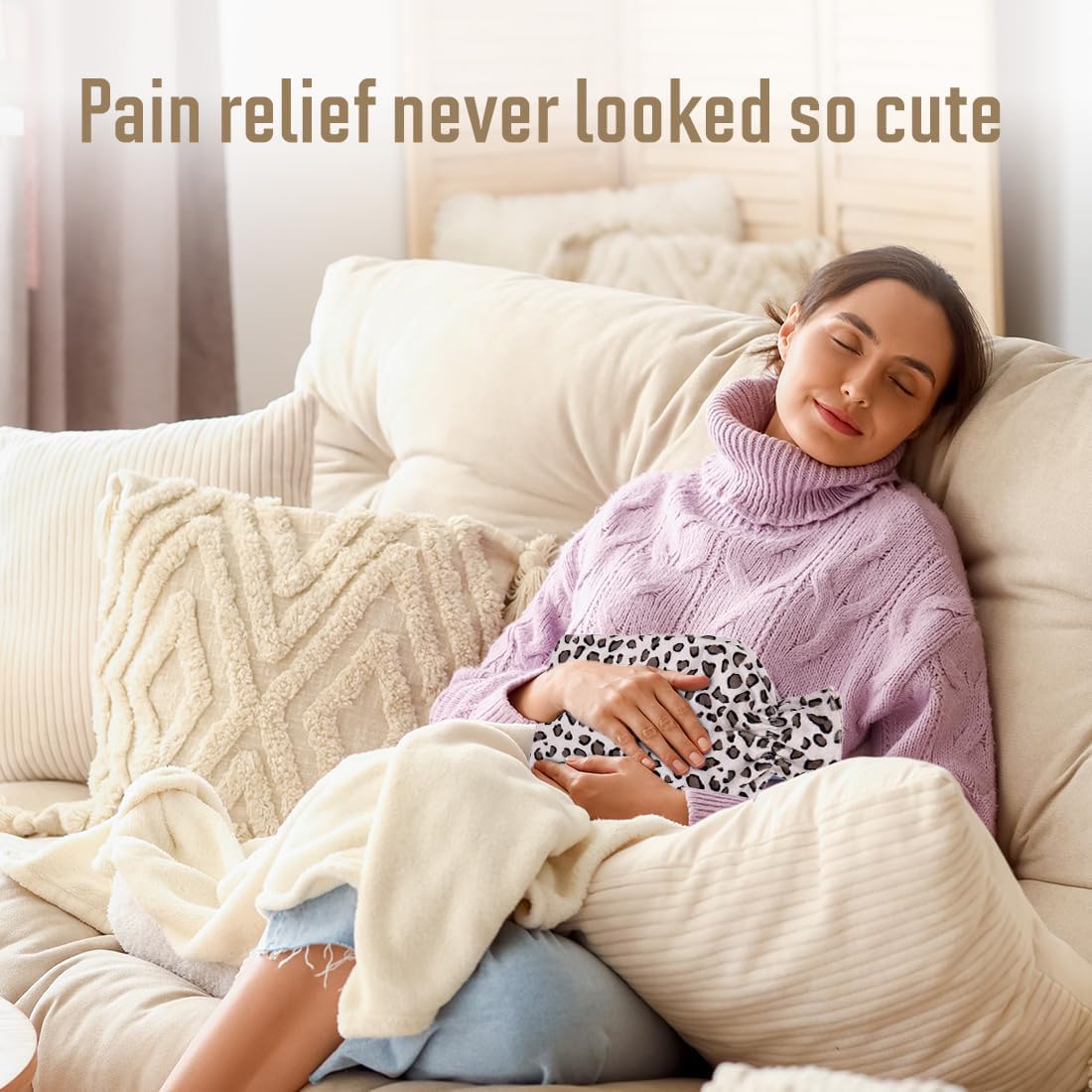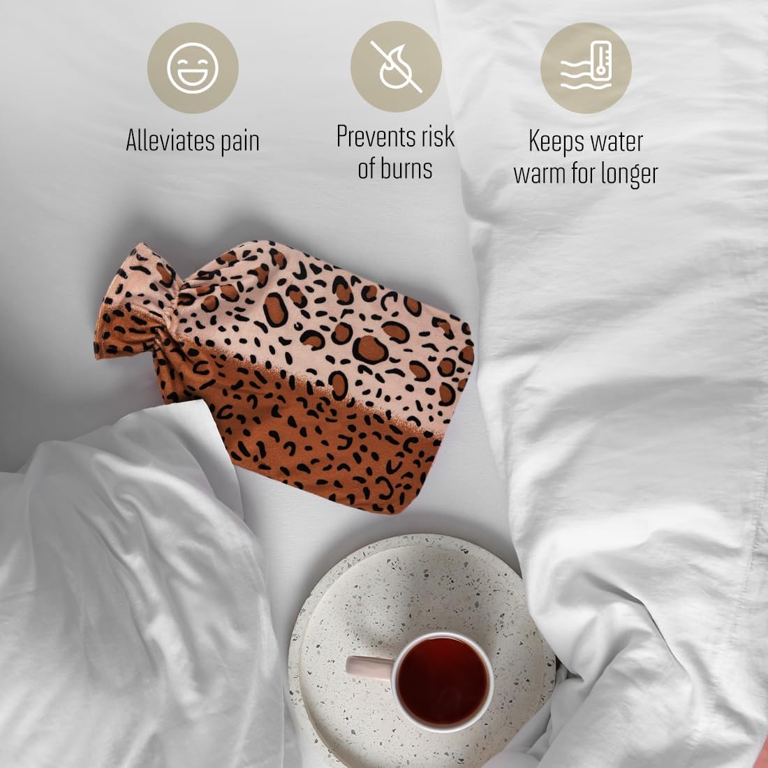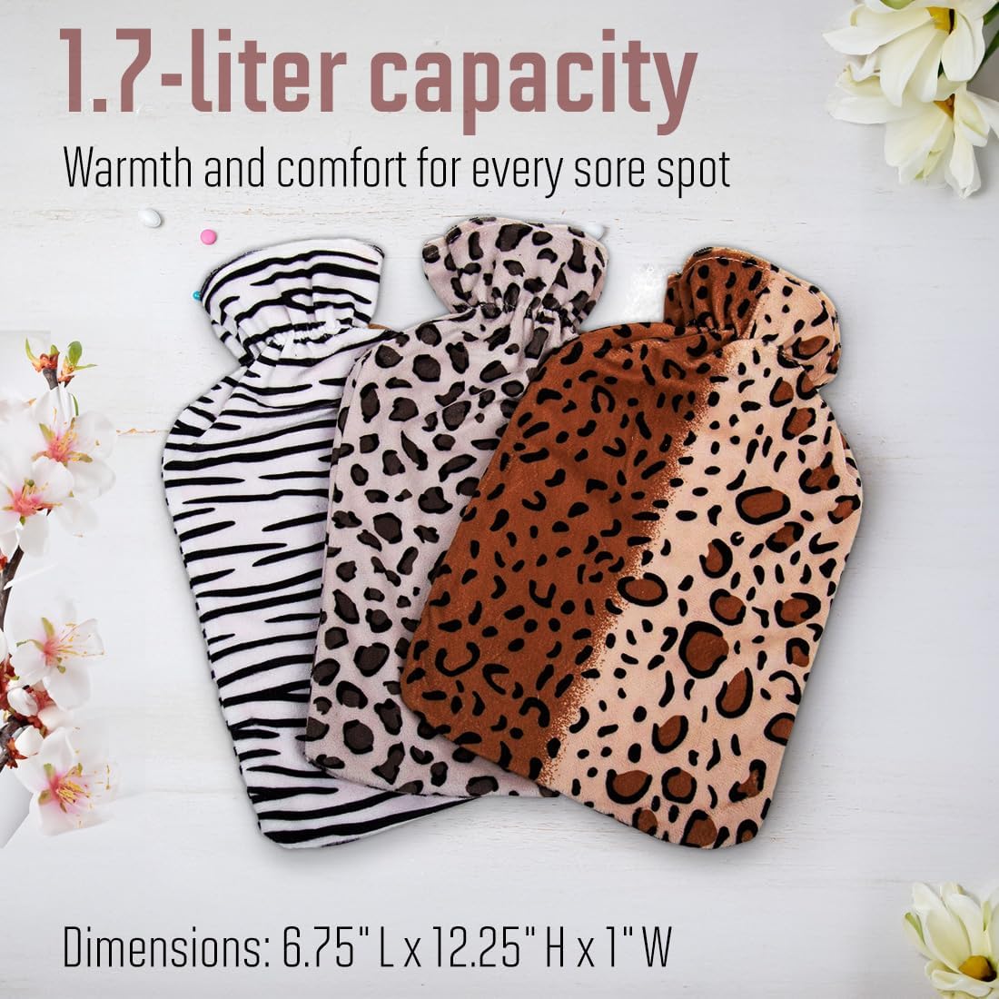 Bodico 热水袋带盖,橡胶加热垫,用于缓解痛经、肌肉疼痛等,秋冬季节热水袋,可爱斑马纹,1.7 升