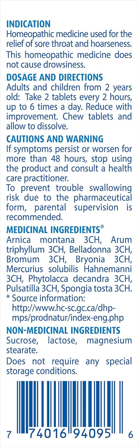 Boiron Roxalia,60 片,用于治疗喉咙痛和声音嘶哑的顺势疗法药物