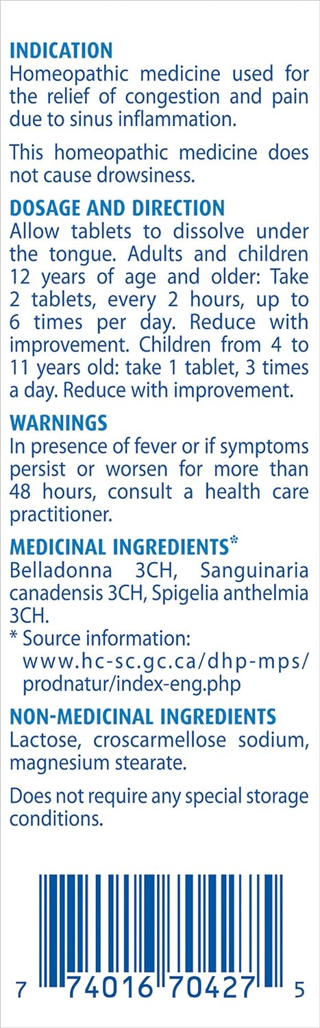 Boiron Sinusalia,60 片装,顺势疗法药物,用于缓解鼻塞和鼻窦炎症相关疼痛,如鼻塞和鼻窦压力,不引起困倦,适用于 4 岁至成人