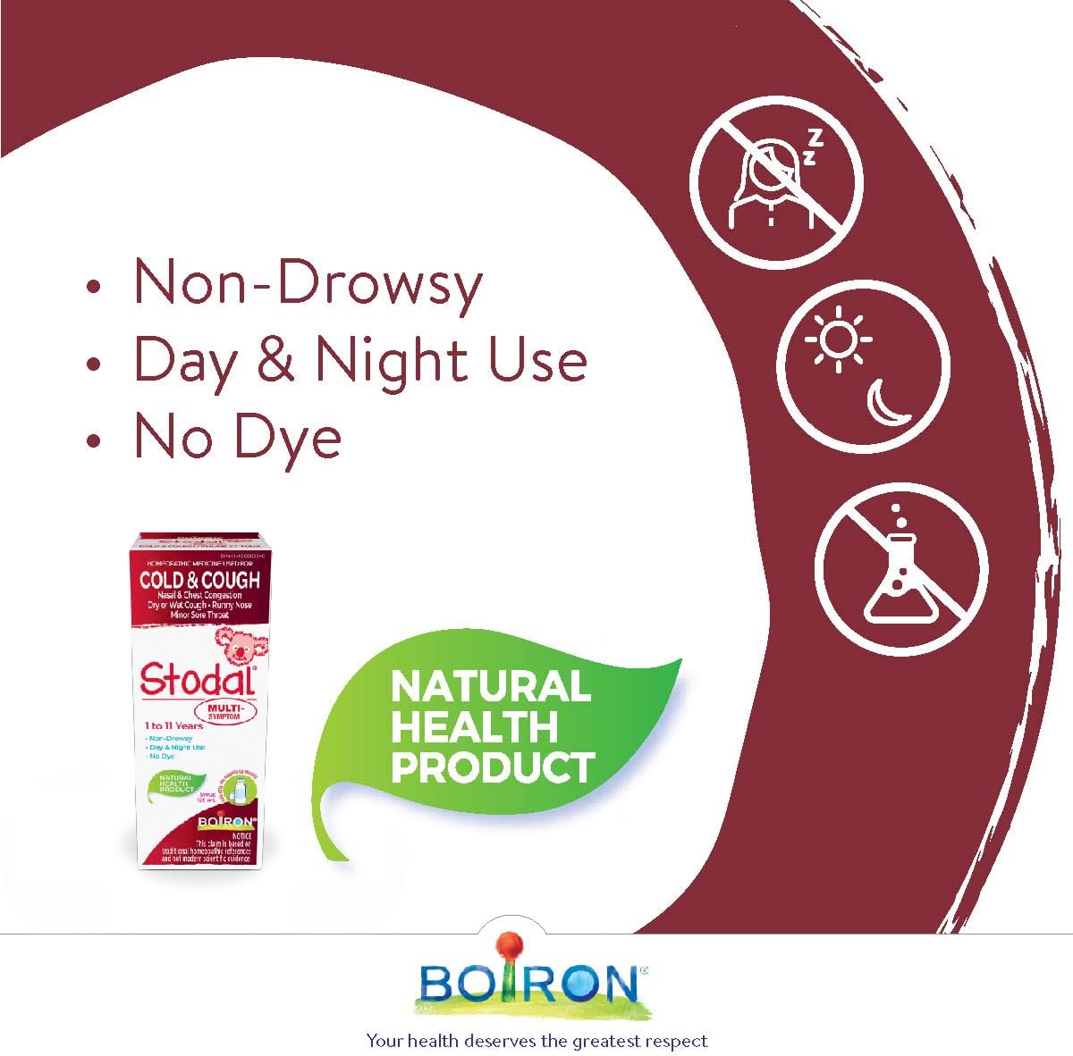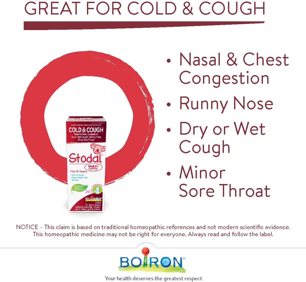 Boiron Stodal 儿童感冒咳嗽多症状糖浆,125毫升,顺势疗法药物