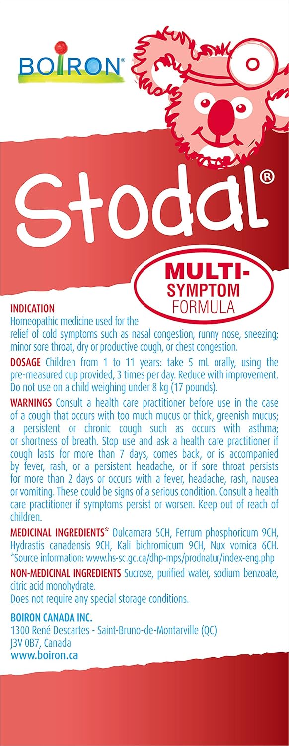 Boiron Stodal 儿童感冒咳嗽多症状糖浆,125毫升。顺势疗法药物,用于缓解鼻塞、流鼻涕、打喷嚏等感冒症状;轻微咽喉痛、干咳或湿咳、胸闷。