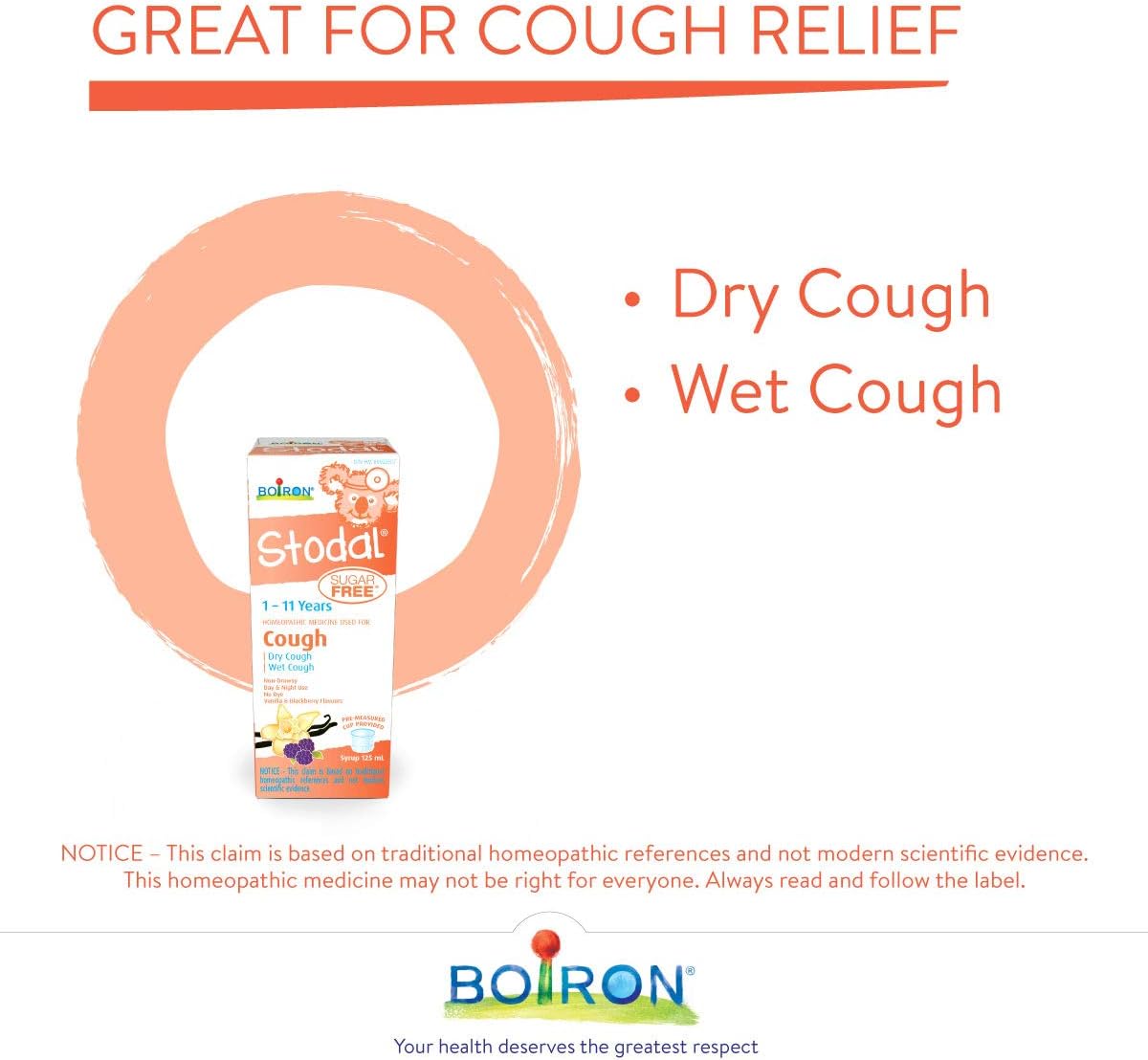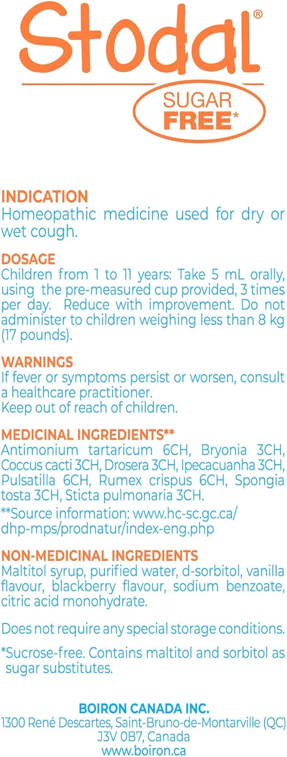 Boiron Stodal 儿童无糖,125ml,香草和黑莓口味,干咳和湿咳顺势疗法药物