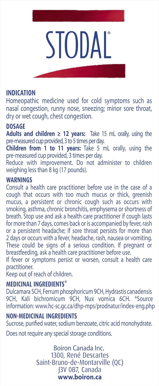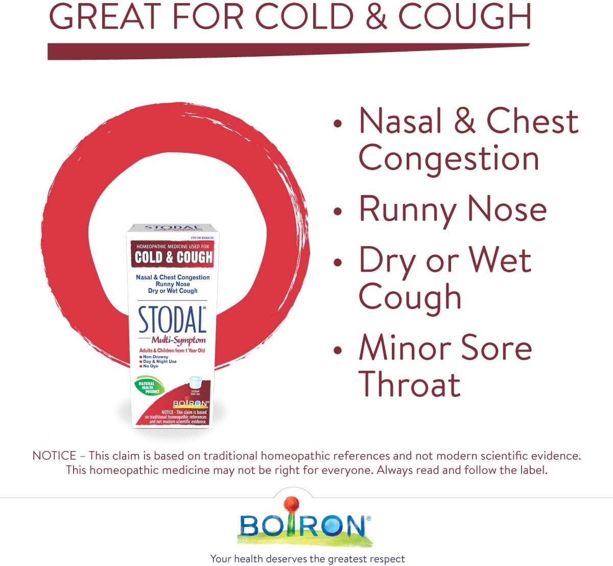 Stodal Multi-Symptom,一种解决方案可解决感冒和咳嗽症状。| 鼻塞和胸闷 | 流鼻涕 | 干咳或咳痰 关于 Stodal Multi-Symptom Stodal Multi-Symptom 糖浆是一种顺势疗法药物,用于缓解鼻塞、流鼻涕、打喷嚏、轻微咽喉痛、干咳或咳痰或胸闷等感冒症状。 Stodal Multi-Symptom 有 200 毫升瓶装。 如何使用? 成人和 12 岁以上儿童:使用提供的预先量好的杯子口服 15 毫升,每天 3 至 5 次。 1 至 11 岁的儿童:使用提供的预先量好的杯子口服 5 毫升,每天 3 次。随着病情好转而减少用量。请勿用于体重低于 8 公斤(17 磅)的儿童。 为什么选择 Stodal Multi-Symptom?您已经了解了Stodal蜂蜜和Stodal无糖糖浆,它们可以缓解干咳和湿咳,或缓解感冒症状。现在,Boiron推出Stodal多症状糖浆,以满足消费者日益增长的需求。