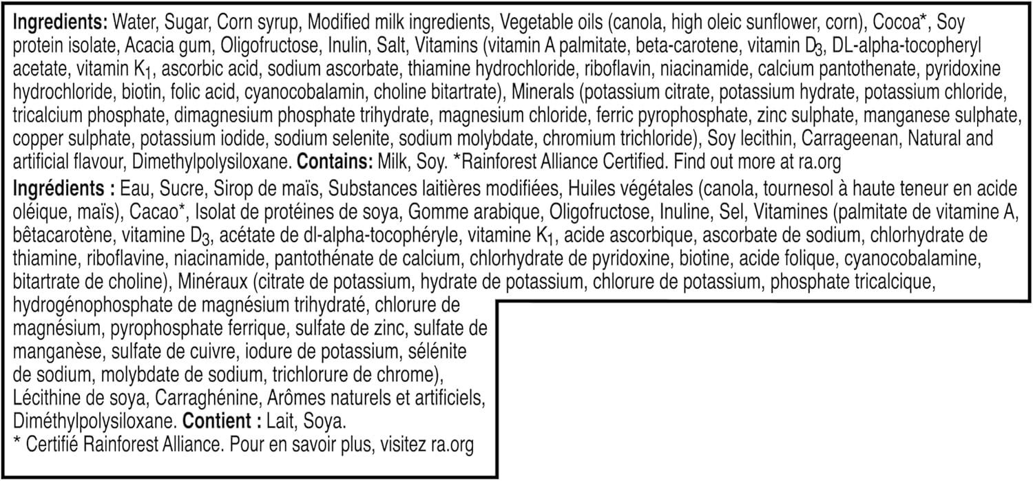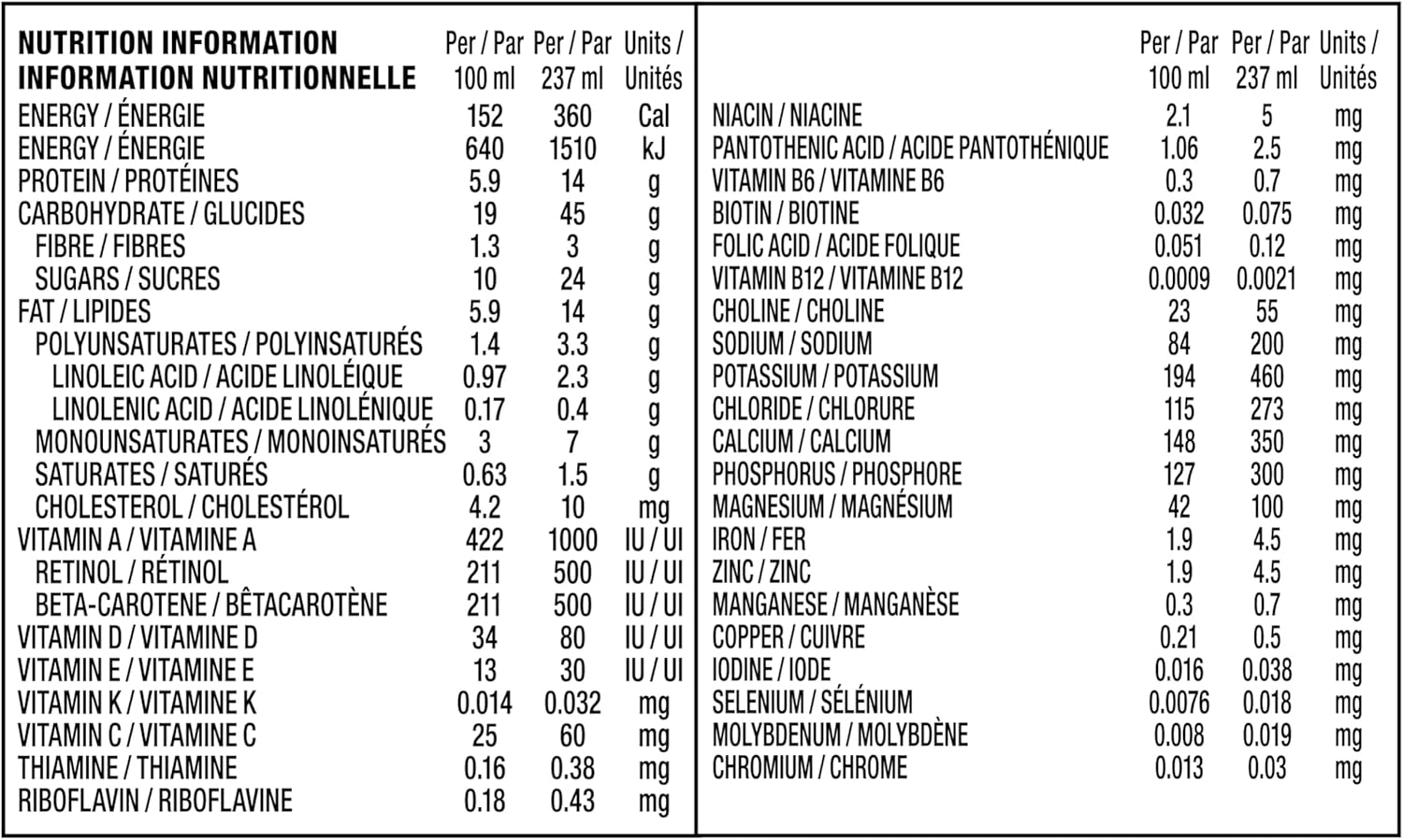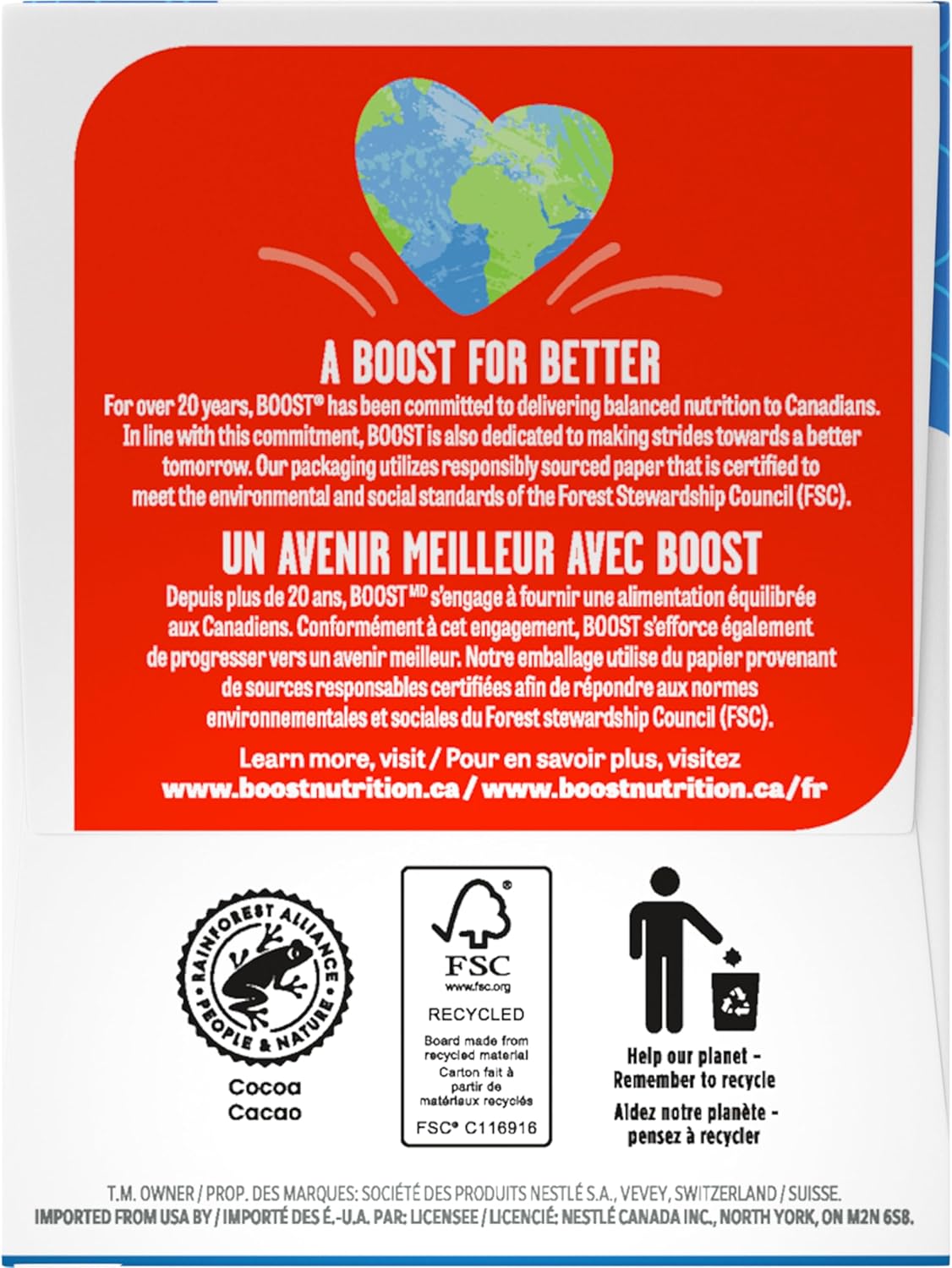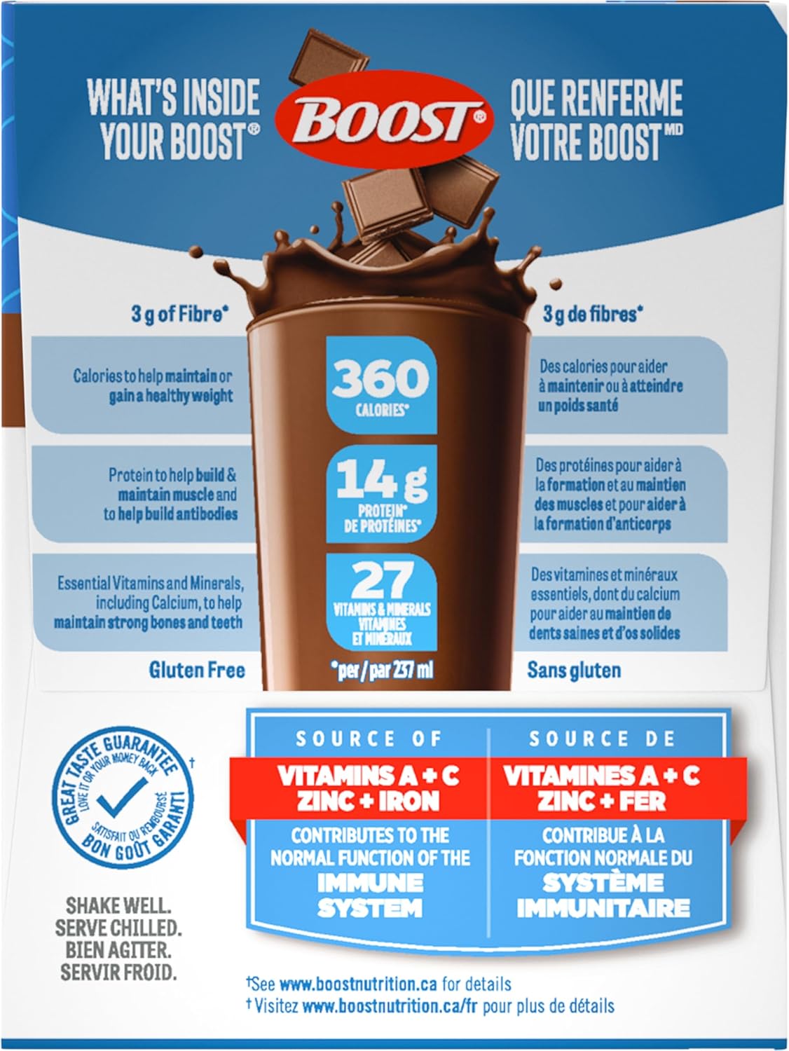 BOOST PLUS 全营养饮品 - 巧克力味(6 x 237 毫升)是一款配方流质膳食,提供全面营养,专为寻求保持或增重健康体重的人士设计。每份 237 毫升含有 360 卡路里、27 种维生素和矿物质以及 14 克蛋白质。此外,我们的配方保证您一定会爱上它带来的美味*。其他口味包括草莓和香草。仅供口服。请遵医嘱服用。*附带条款和条件。