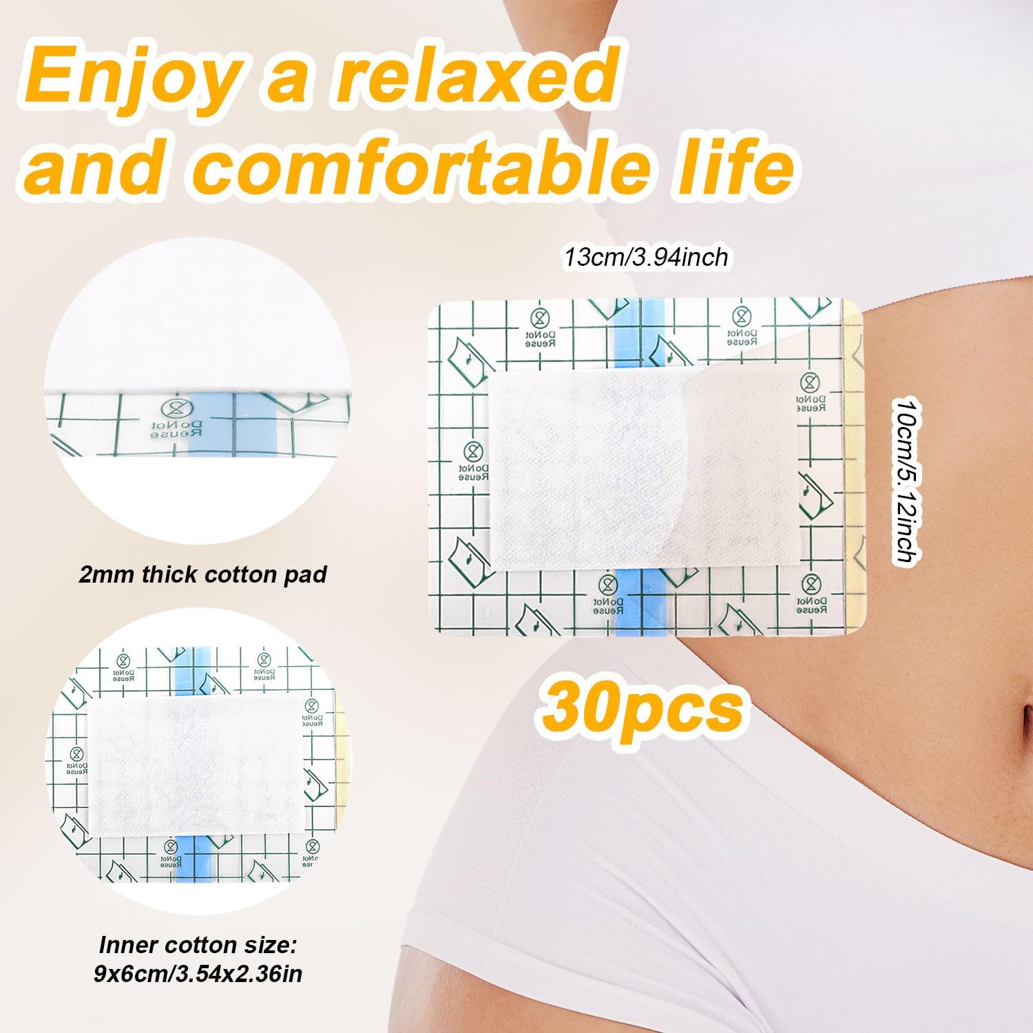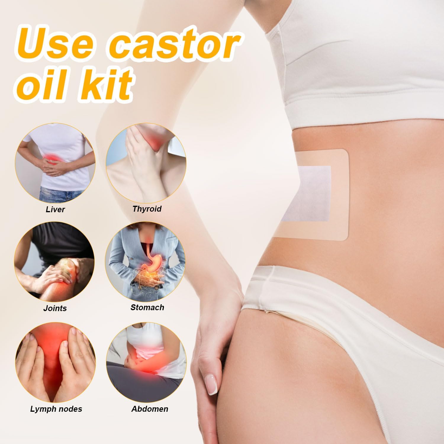 BOXOB 30片装蓖麻油贴,自粘式便携式蓖麻油肚脐贴,防漏吸水棉,居家旅行的完美礼物