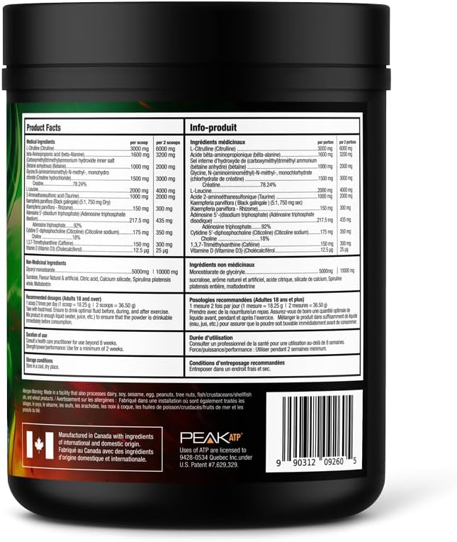 BULL Nutrition 12 STRONG - 含甘油、L-瓜氨酸、β-丙氨酸和肌酸补充剂的运动前粉末,可促进肌肉生长并提高耐力、力量、专注力和能量输出 - 加拿大制造 - 40 份……