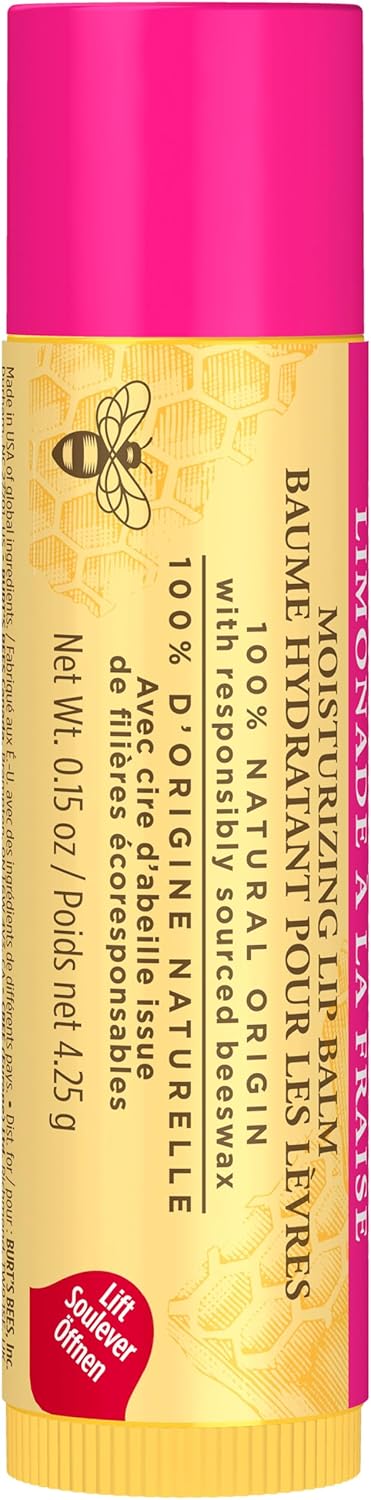 用润唇膏开启怀旧夏日!Burt’s Bees® 保湿润唇膏滋养双唇,令双唇倍感奢华。蕴含强效水果萃取和蜂蜡,能够深层滋润并柔化双唇,滋养的油脂和黄油成分令双唇水润饱满,健康亮泽。这款无色泽的舒缓润唇膏拥有哑光妆效和滋润润唇膏的质地,涂抹顺滑,滋养干燥的双唇,令双唇焕发活力,水润饱满。蕴含椰子油和乳木果油,可软化并滋养双唇,并享受草莓柠檬水带来的夏日芬芳。方便携带,可随身携带,轻松放入口袋或手提包,方便携带天然滋养的唇部护理产品。这款100%天然来源的美容产品不含对羟基苯甲酸酯、邻苯二甲酸酯、凡士林和十二烷基硫酸钠 (SLS),能够美化并焕活您的双唇。使用天然的 Burt’s Bees 保湿润唇膏,让双唇感觉最佳。