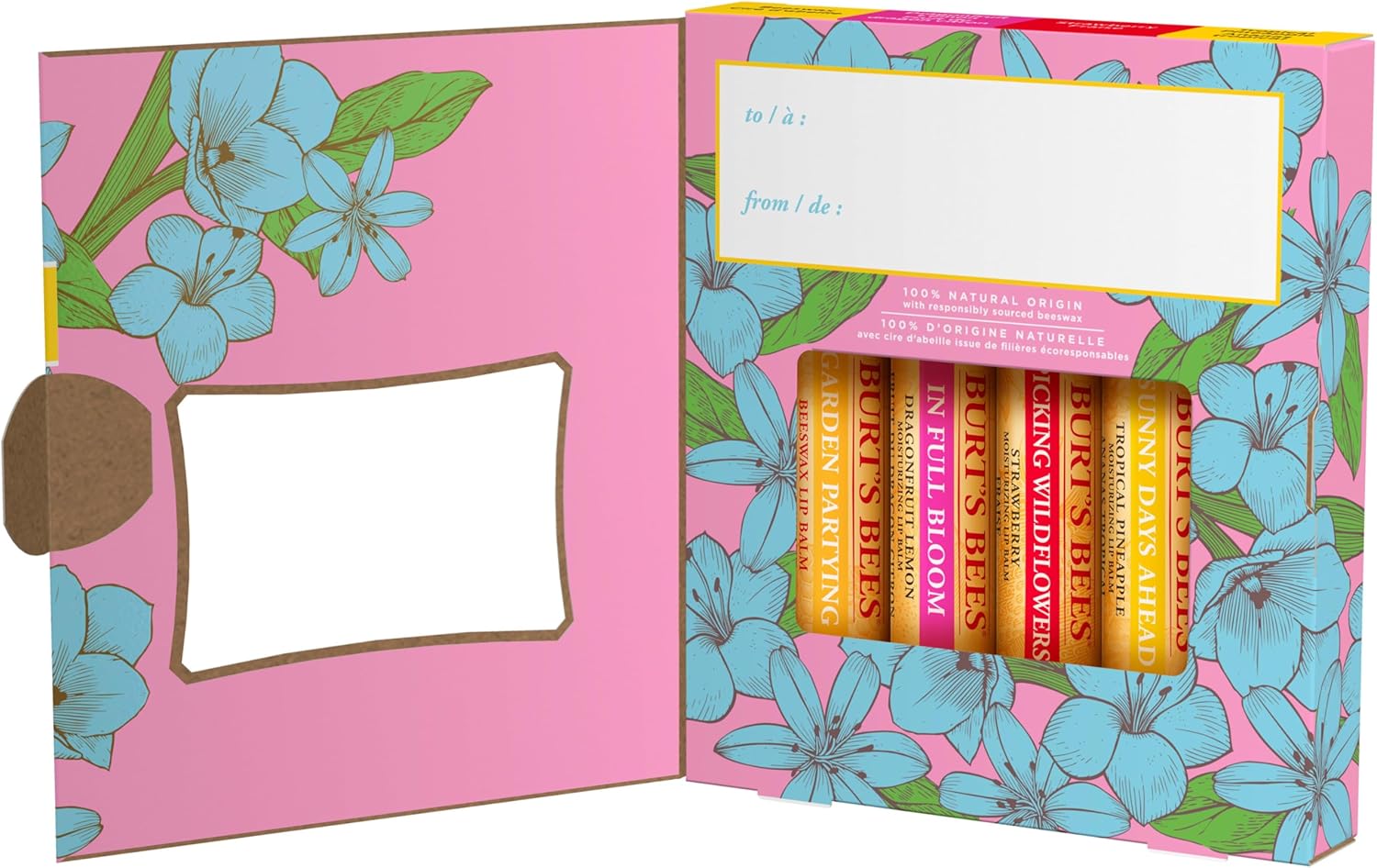 Burts Bees 盛放套装是一款男女通用的四件套润唇膏,包含 0.15 盎司润唇膏 - 原味蜂蜡、0.15 盎司润唇膏 - 火龙果柠檬、0.15 盎司润唇膏 - 热带菠萝和 0.15 盎司润唇膏 - 草莓。每款润唇膏都能为肌肤带来保湿滋润和温和自然的呵护。