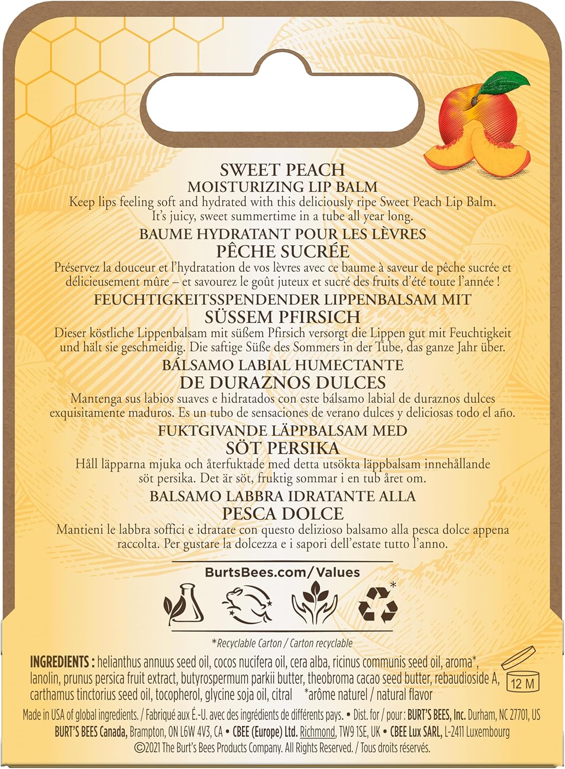 Burt's Bees 100% 天然保湿润唇膏,适用于干裂嘴唇,唇部护理,柔软光滑双唇,1 支装 - 甜桃色