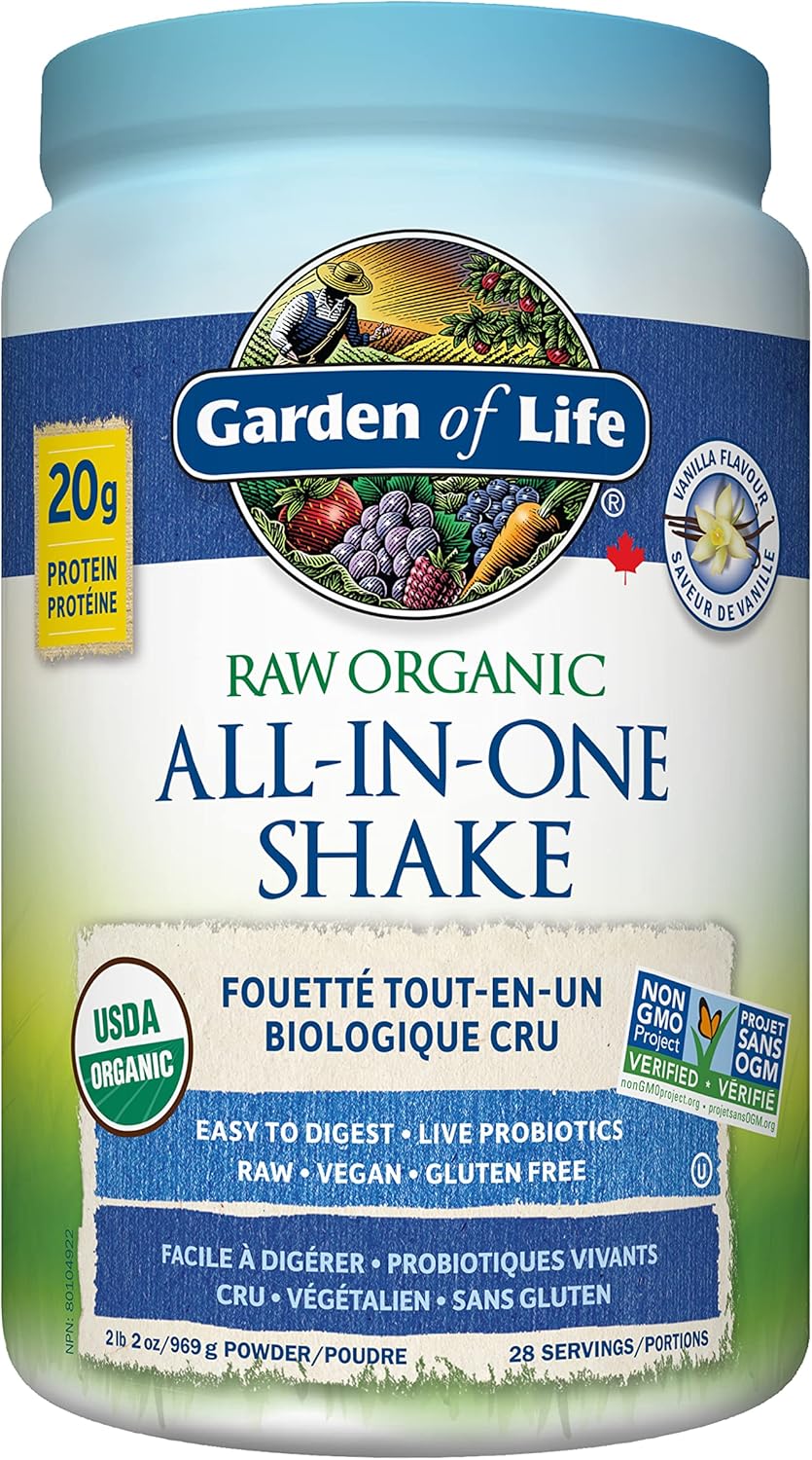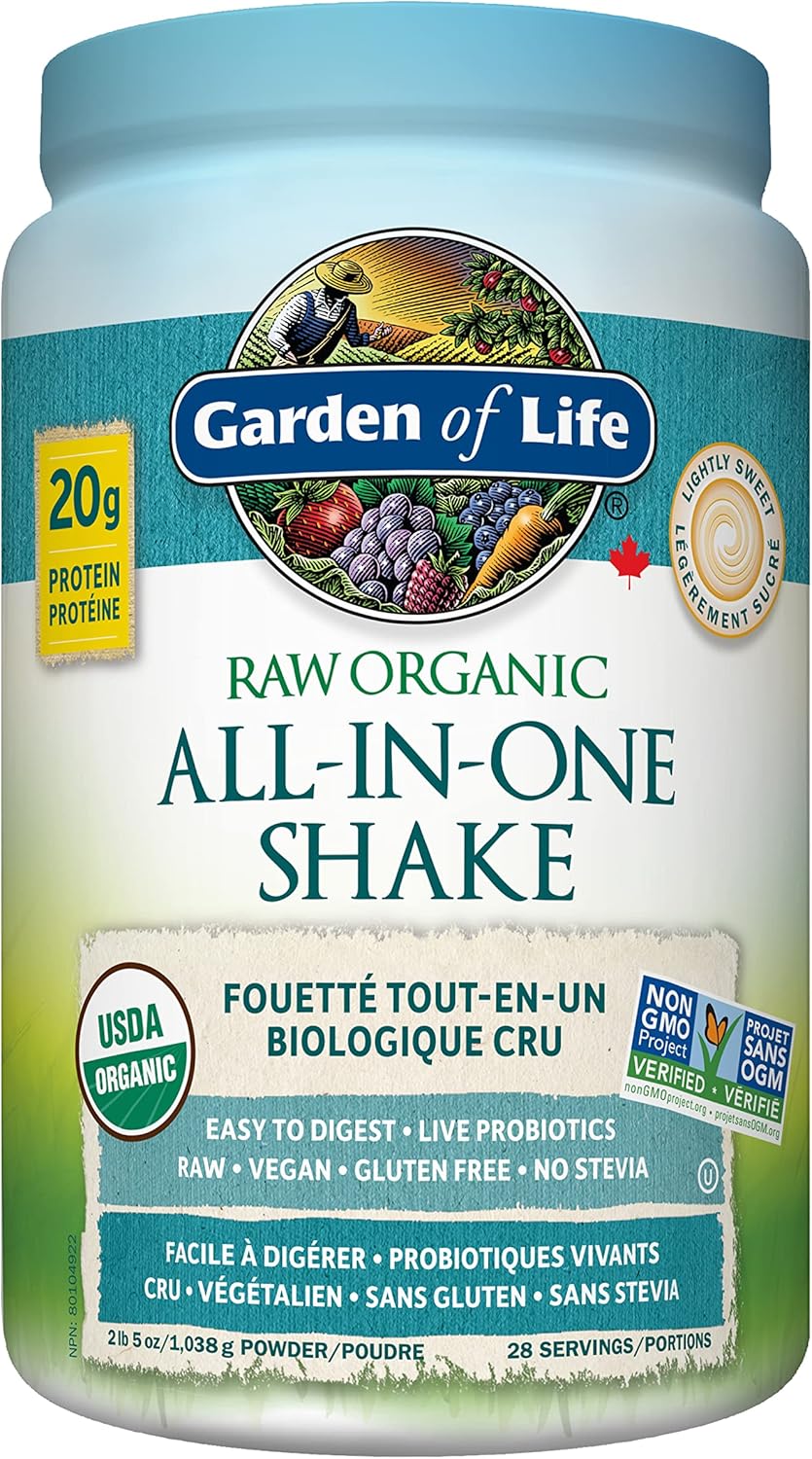 Garden of Life 生食全效营养奶昔,香草味,969 克。含有 20 克经过认证的有机植物蛋白,富含令人难以置信的营养,有助于锻炼肌肉。结合定期训练和健康均衡的饮食,有助于锻炼肌肉。Garden of Life 生食全效营养奶昔,香草味,969 克。Garden Of Life 生食全效营养奶昔,微甜,1038 克。含有 20 克经过认证的有机植物蛋白,富含令人难以置信的营养,有助于锻炼肌肉。结合定期训练和健康均衡的饮食,有助于锻炼肌肉。富含 44 种超级食物、21 种全食物维生素和矿物质。Garden of Life 生食全效营养奶昔 - 微甜 1038 克