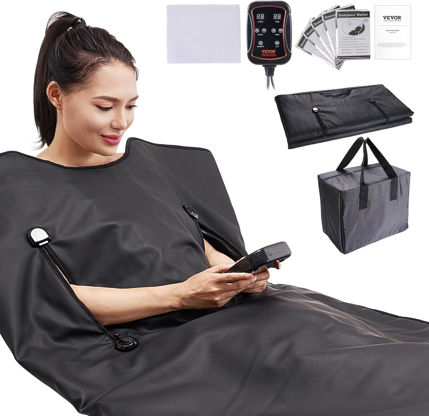 VEVOR 排毒桑拿毯,家用便携式远红外桑拿,带臂孔,舒适度高,1-6 级可调温度范围 95-185℉,1-60 分钟定时器,碳纤维加热