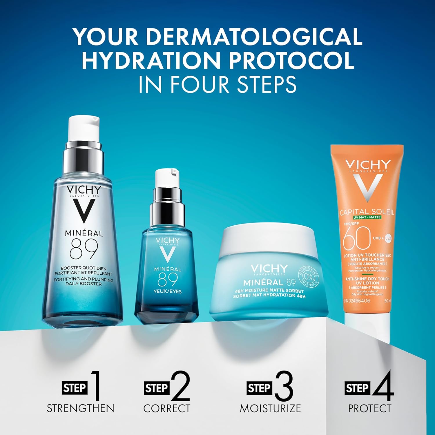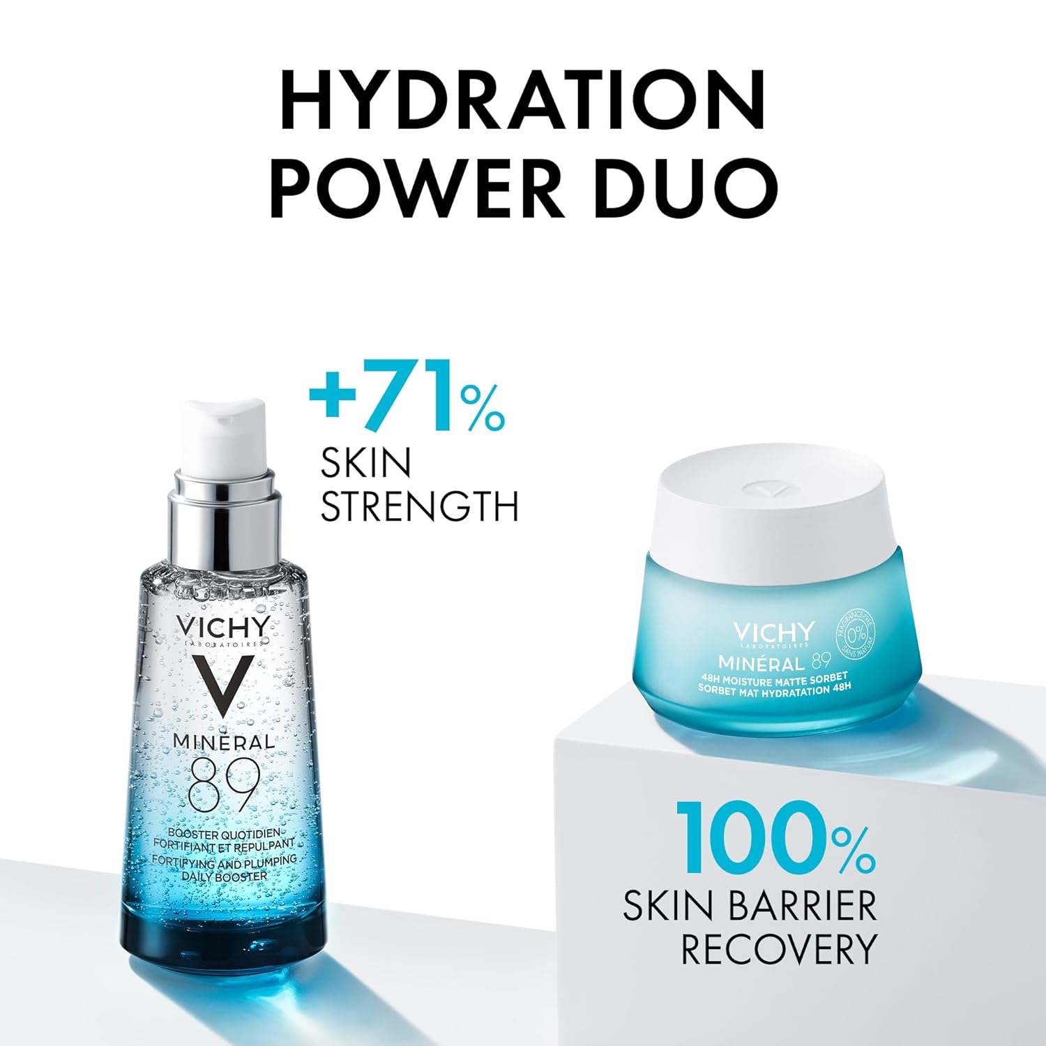 薇姿保湿面霜,矿物 89 哑光冰糕无香凝胶和透明质酸面部精华套装,适合中性至油性、敏感性肌肤,皮肤科医生推荐
