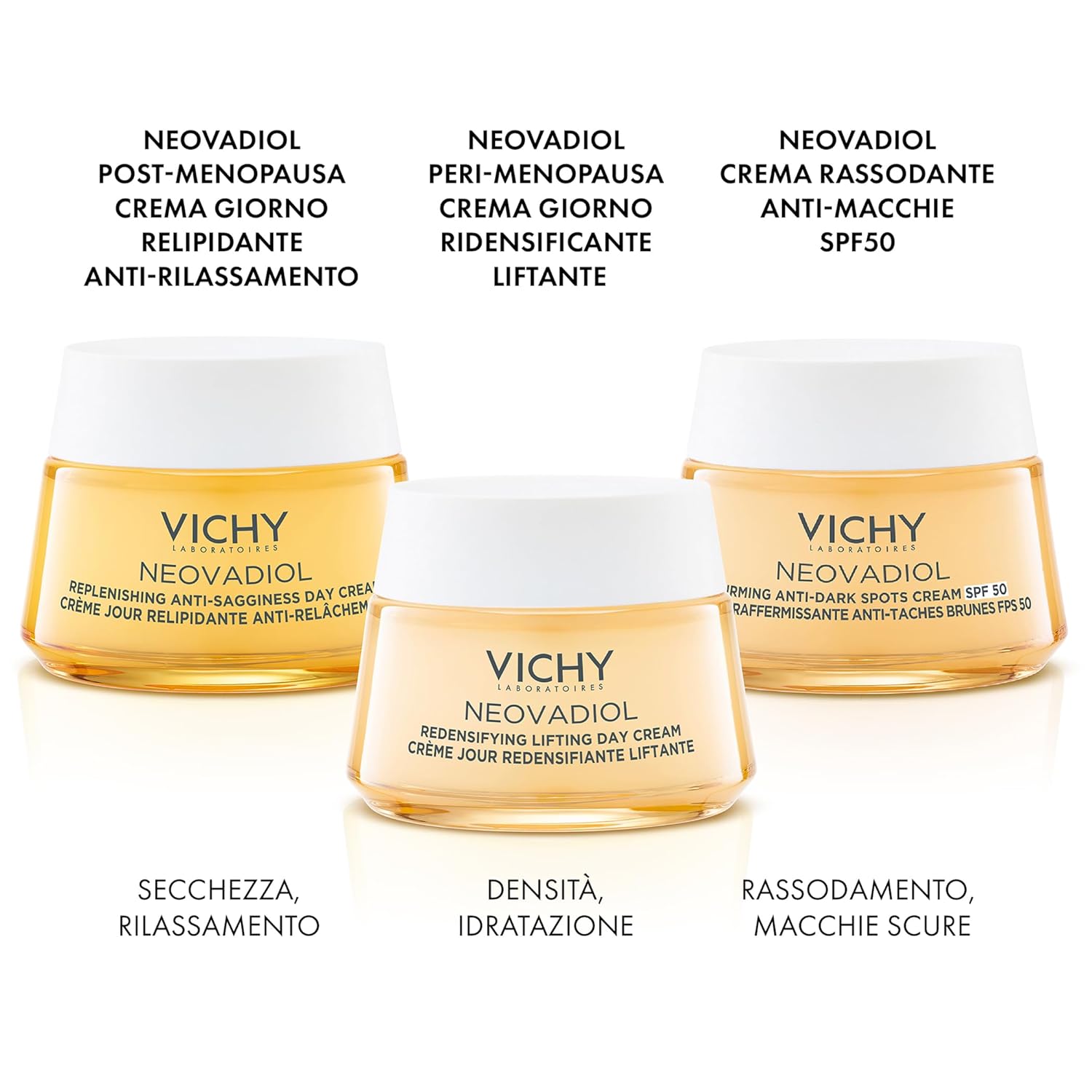 薇姿Neovadiol Peri更年期面霜,适合50岁以上女性,适合中性或干性肌肤,50毫升。蕴含透明质酸、烟酰胺和Proxylane的丰盈面部保湿霜,可有效淡化皱纹,提升肌肤弹性。