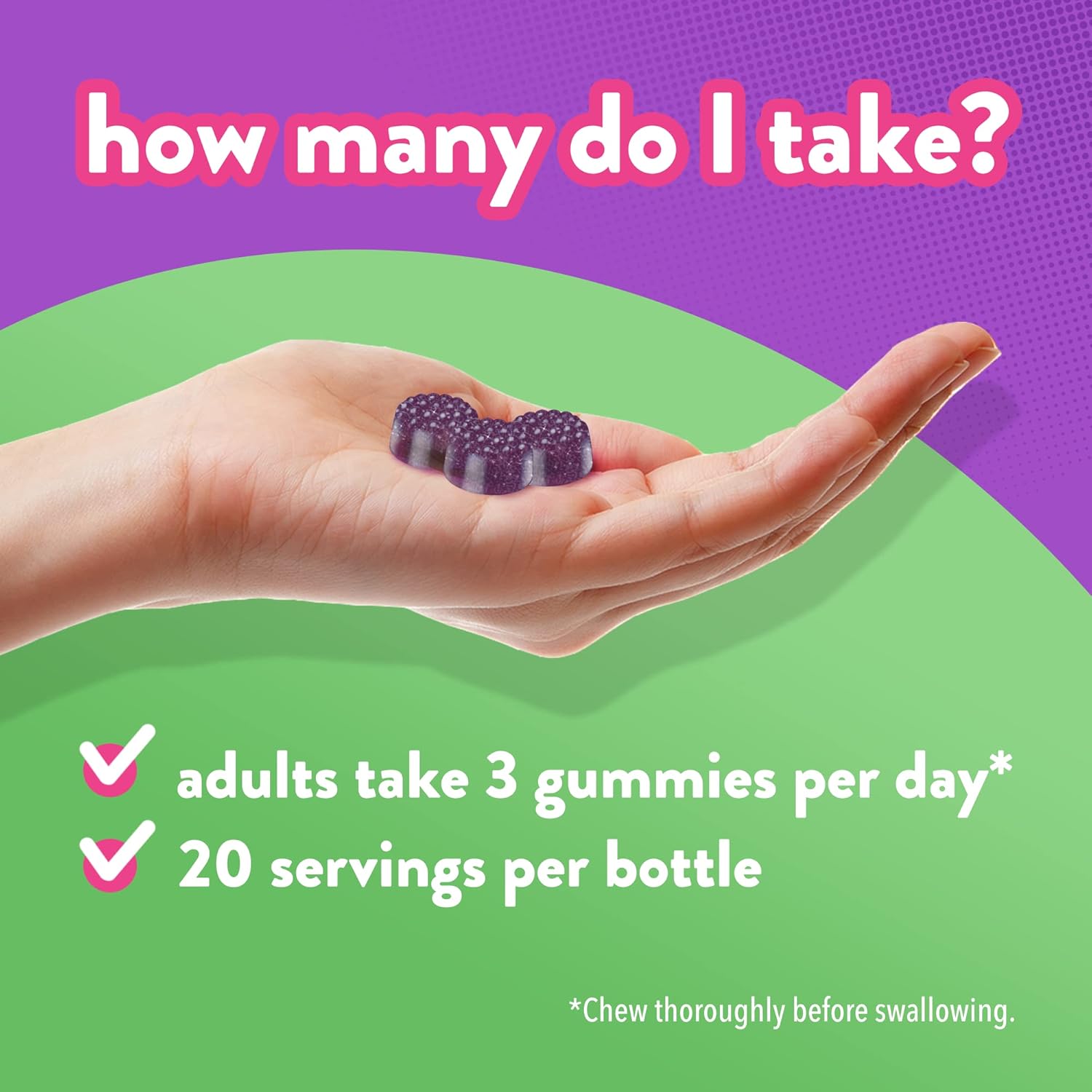 Vitafusion 接骨木莓成人维生素软糖,富含维生素 C 和维生素 D,有助于增强免疫力,每份含 225 毫克接骨木莓浓缩汁。接骨木莓传统上用于草药,有助于缓解感冒和流感症状,包括发烧。这是 Vitafusion 免疫增强系列的最新维生素软糖。这款美味的天然浆果味维生素软糖不含人工香料或甜味剂、麸质或乳制品、高果糖玉米糖浆和合成色素 (FD&C),为您带来愉悦的维生素体验!