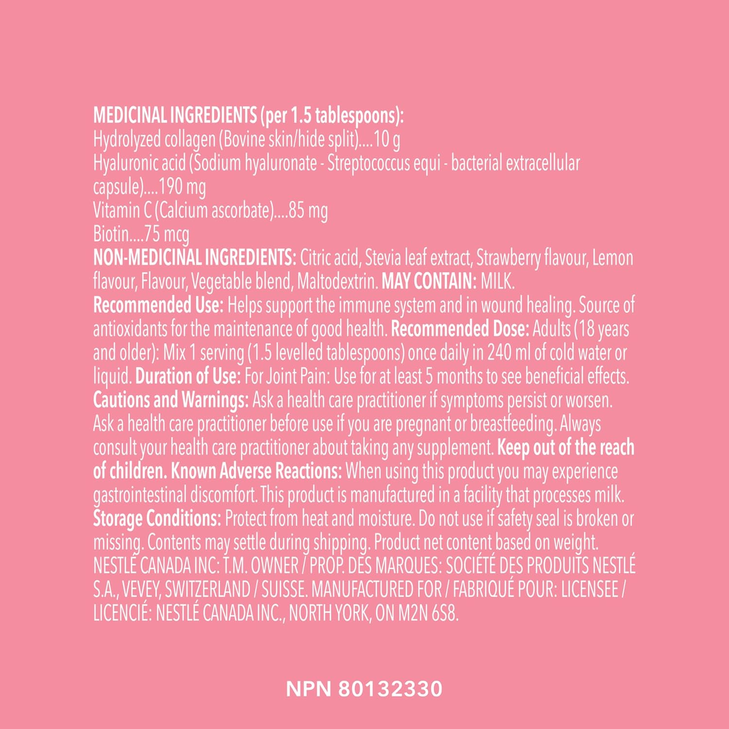VITAL PROTEINS 美容胶原蛋白肽草莓柠檬粉,含有透明质酸、生物素和维生素 C,可滋养头发、皮肤和指甲,帮助形成胶原蛋白,减轻骨关节炎引起的关节疼痛,201 克