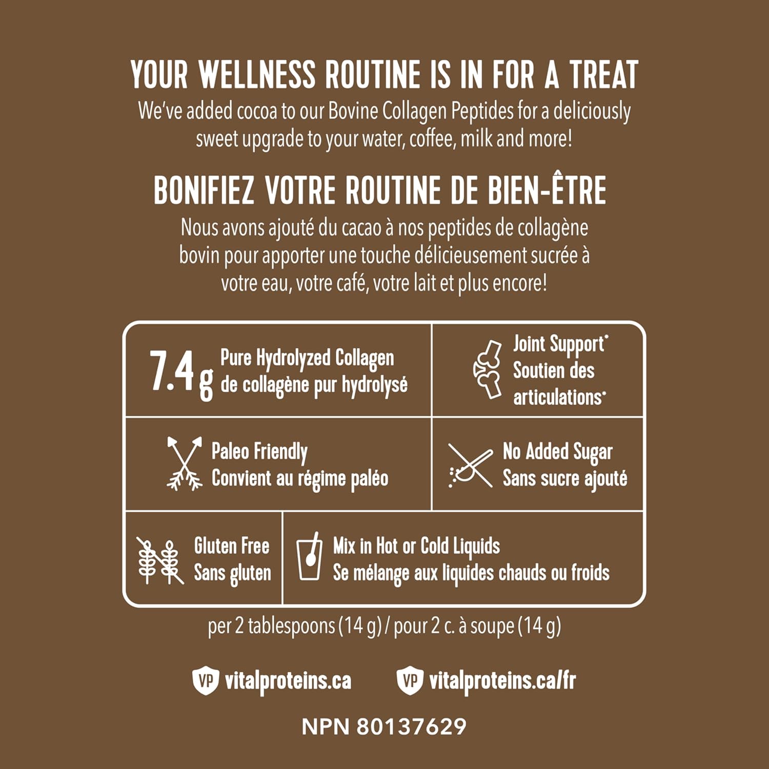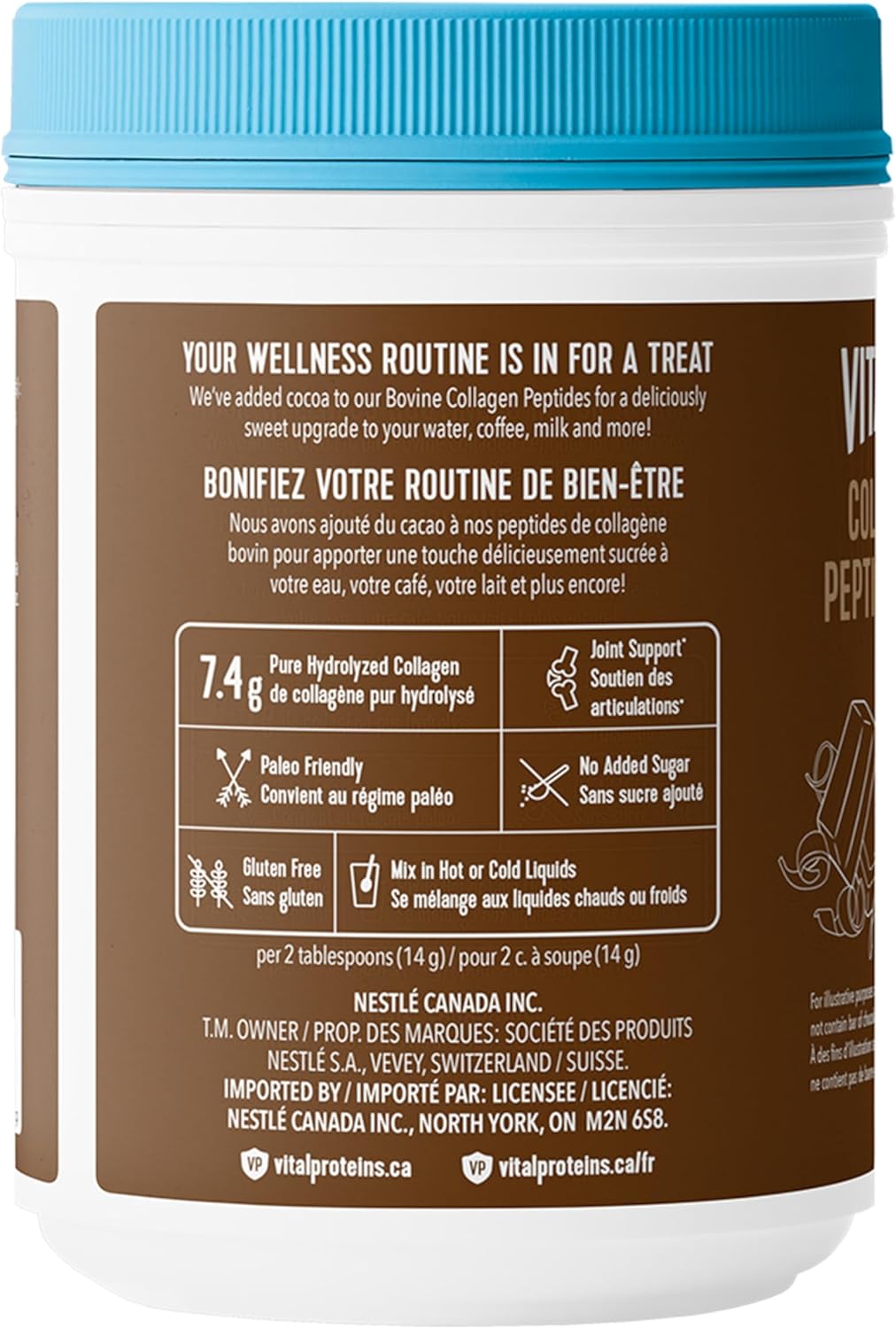 VITAL PROTEINS 巧克力牛胶原蛋白肽粉,有助于形成胶原蛋白并减轻与骨关节炎相关的关节疼痛,氨基酸来源,不添加糖,275 克