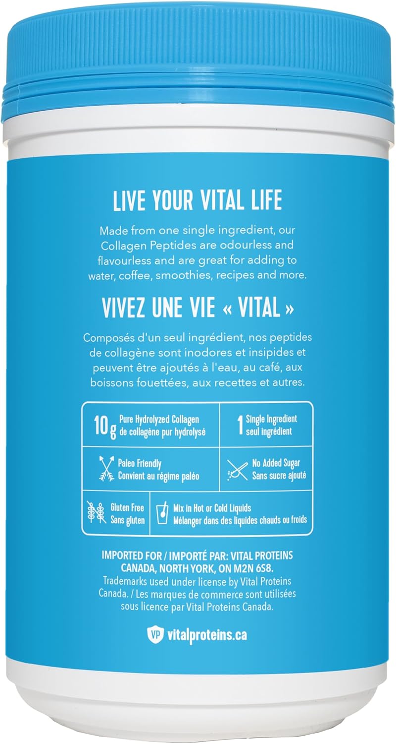 Vital Proteins 胶原蛋白肽强效补充剂(I、III 型),适用于皮肤、头发、指甲和关节 - 水解胶原蛋白 - 不含乳制品和麸质 - 每份 20 克 - 无味 20 盎司大罐装(567 克)胶原蛋白是我们身体所依赖的蛋白质,可确保皮肤、头发、肌腱、软骨、骨骼和关节的健康和活力**。连接我们身体、保持肤色和关节强健的一切都需要胶原蛋白。Vital Proteins 牛胶原蛋白粉(I、III 型)- 水解胶原蛋白 - 每剂 10 克 - 无味 10 盎司小罐装(284 克)胶原蛋白是我们身体所依赖的蛋白质,可确保皮肤、头发、肌腱、软骨、骨骼和关节的健康和活力**。连接我们身体、保持肤色和关节强健的一切都需要胶原蛋白。