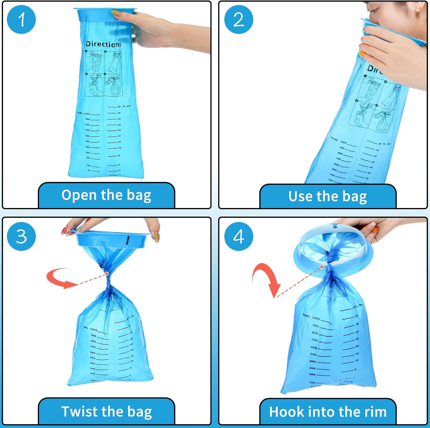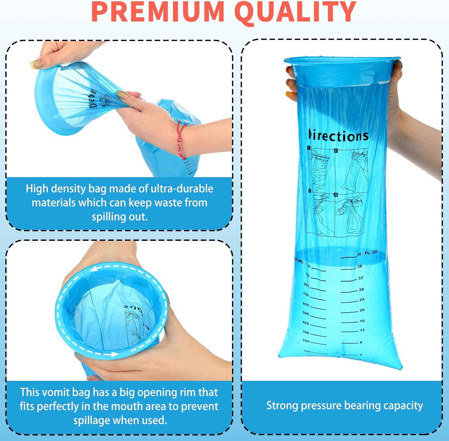 呕吐袋一次性呕吐袋 10 个装,1000 毫升蓝色高密度呕吐袋带按扣,非常适合孕吐、儿童、孕妇、晕车、晕机等