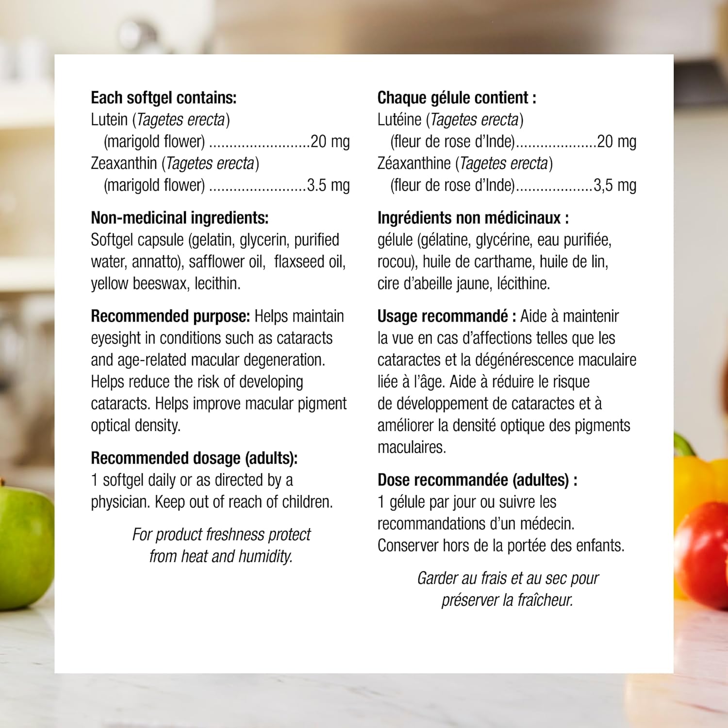 叶黄素和玉米黄质是天然存在于眼睛和某些植物中的类胡萝卜素色素。补充这种抗氧化配方可以保护脆弱的眼睛免受自由基和阳光的伤害。