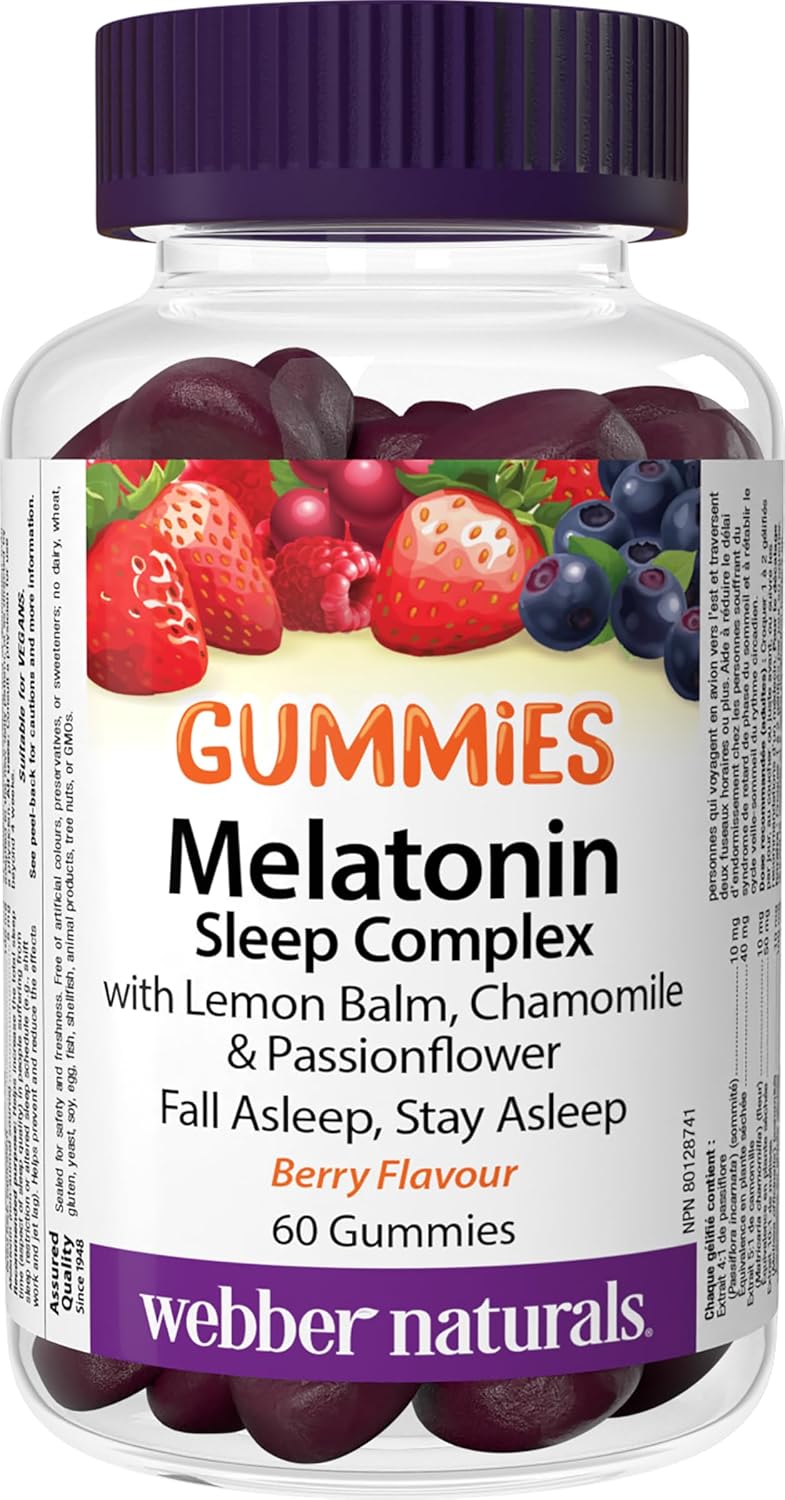 Webber Naturals 的褪黑素睡眠复合软糖,美味浆果口味,含 5 毫克褪黑素。这款纯素软糖有助于您更快入睡,并保持更长时间的睡眠,蕴含舒缓的柠檬香蜂草、洋甘菊和西番莲。