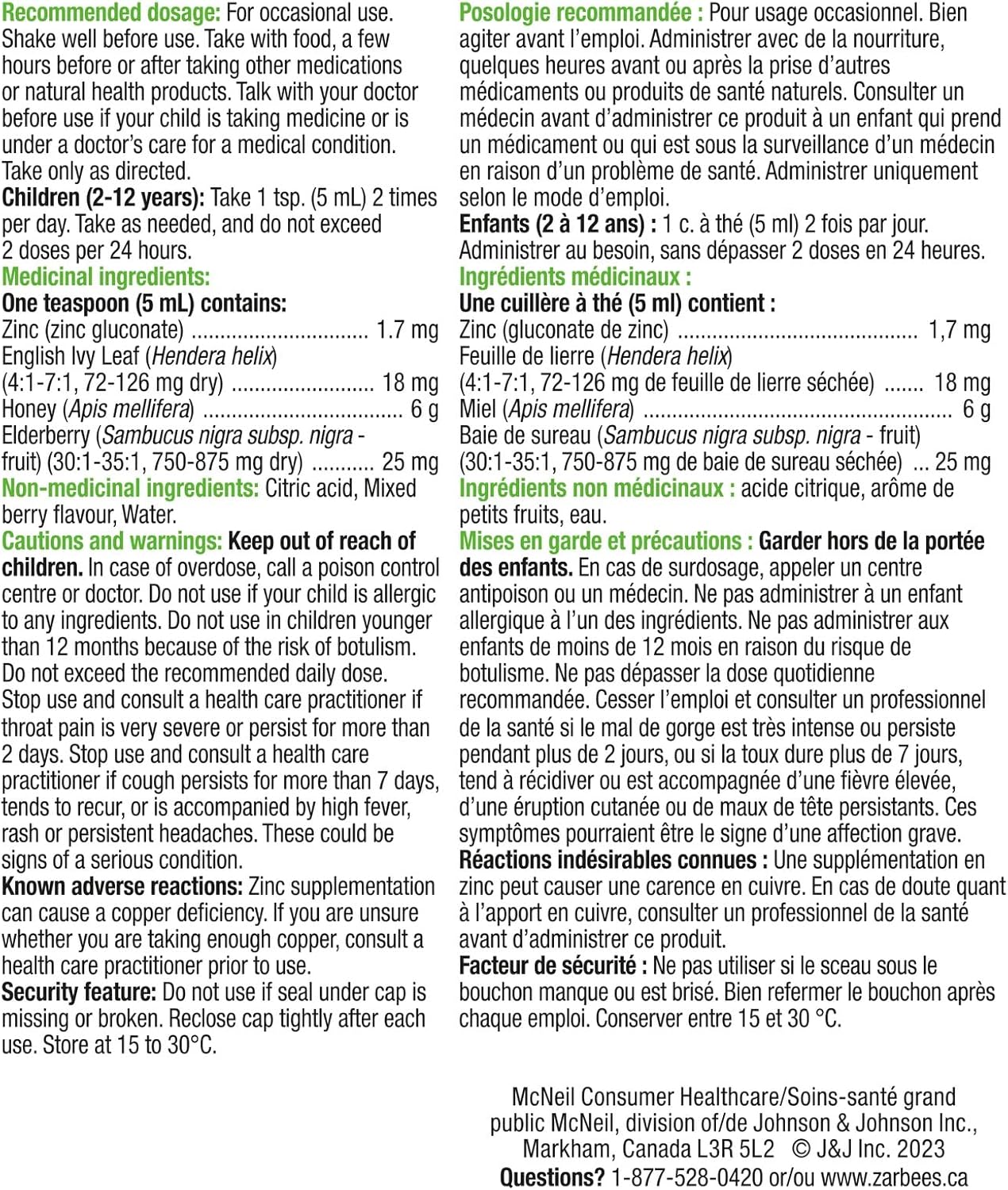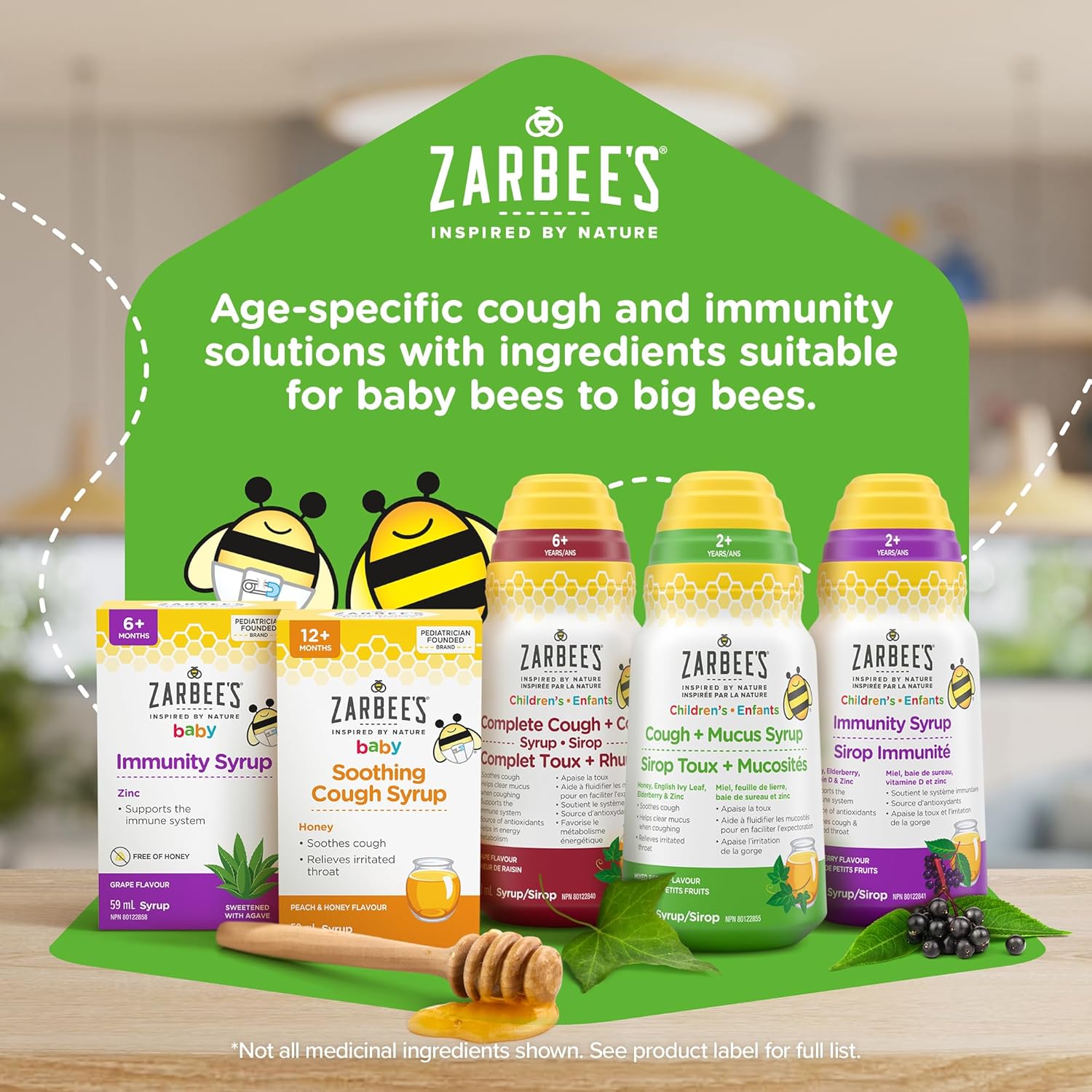 Zarbee 儿童止咳化痰糖浆,含锌、蜂蜜、接骨木果、英国常春藤叶、免疫系统、混合浆果味,118 毫升