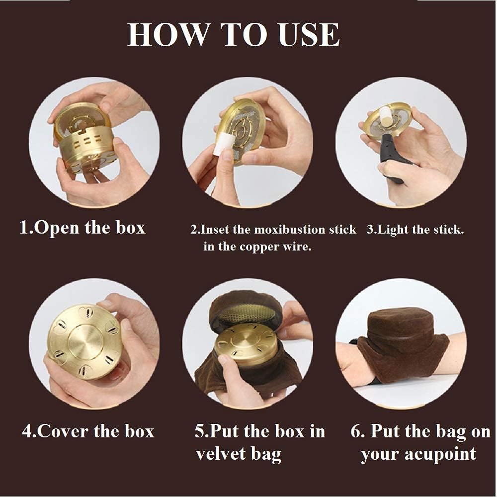 10年纯度60:1比例纯艾灸棒54卷/盒,3个铜炉头盒,3合1便携式无烟布袋腰带和1张穴位图Y2482
