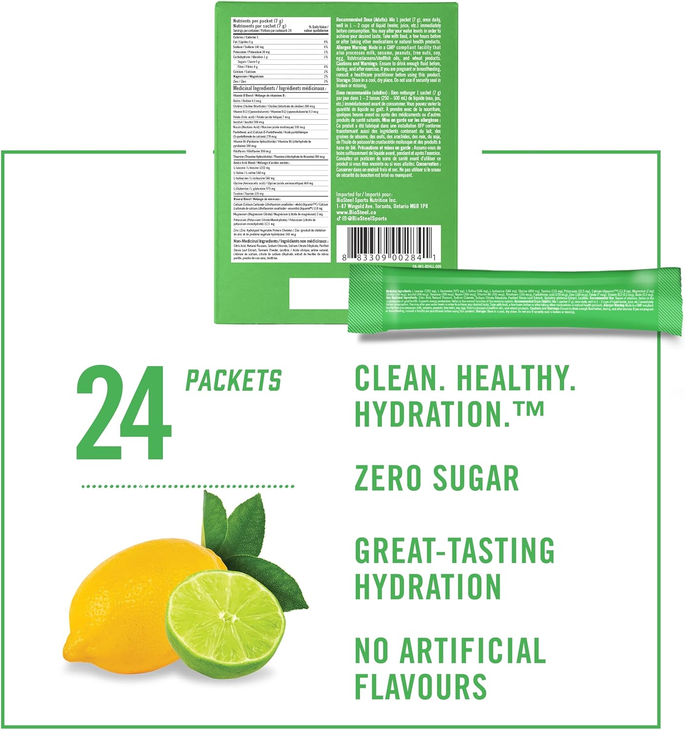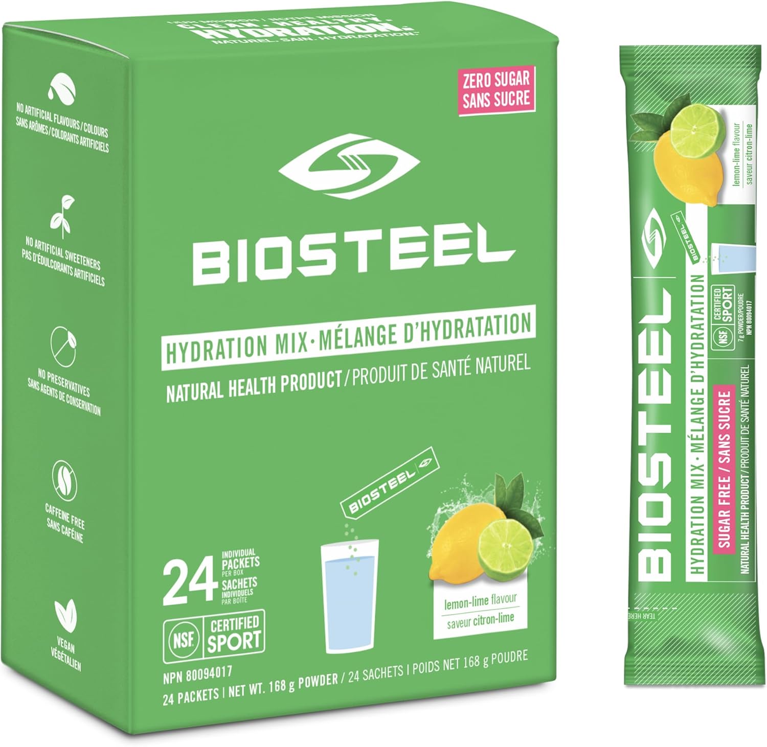 BioSteel 补水混合物,加拿大制造 - 美味补水,零糖,不含人工香料或防腐剂,柠檬青柠口味,24 个独立包装