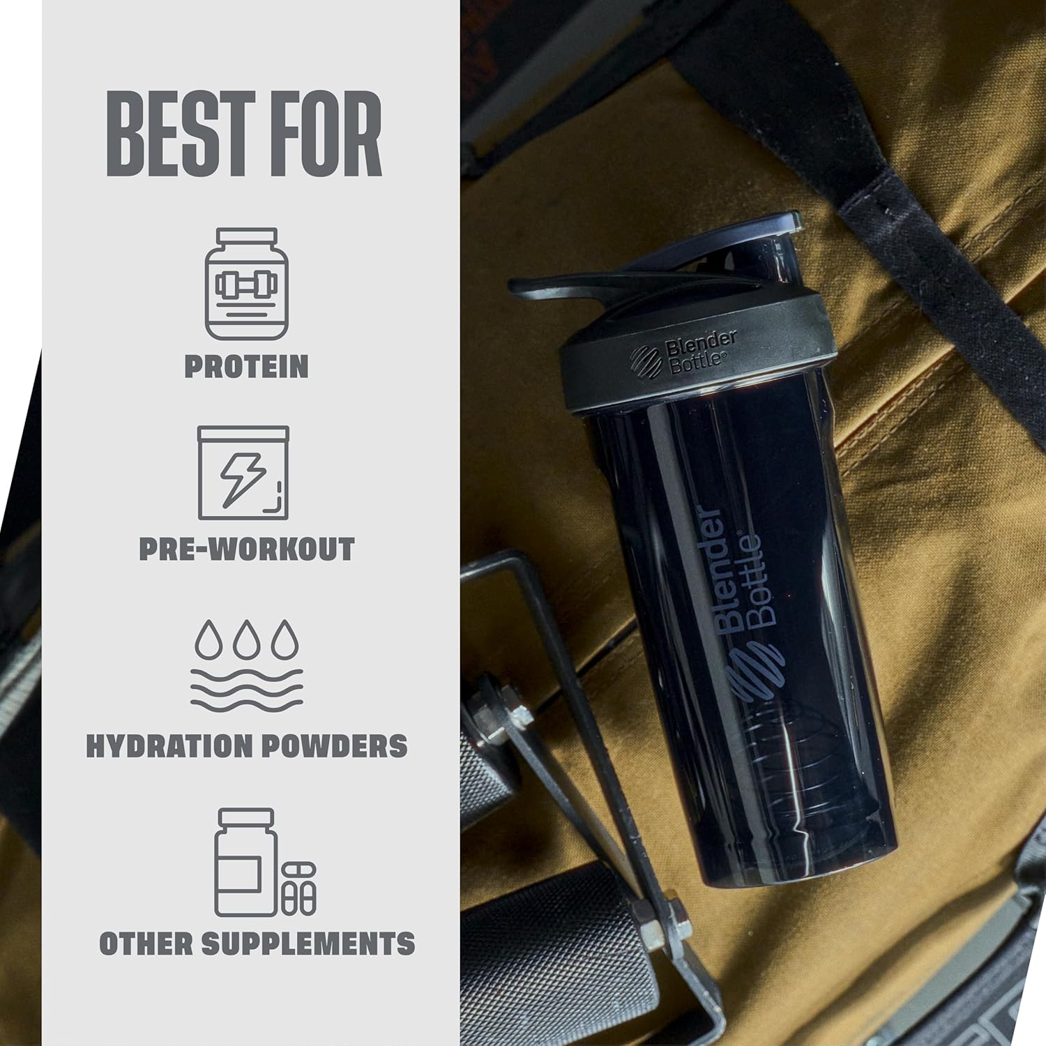 正宗 BlenderBottle,用于混合蛋白质奶昔和冰沙,具有易于打开/关闭的按钮翻盖,并带有滑动锁,以防止意外打开