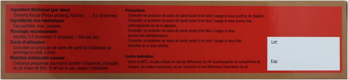 中国红参 5500 毫克安瓿,10 支(包装可能有所不同)