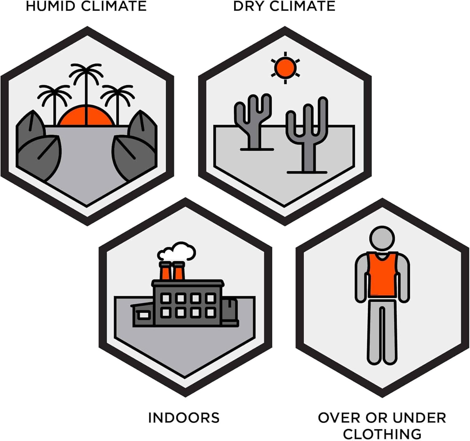Ergodyne Chill-Its 6230 高级相变冷却背心(带背包)可让工人更凉爽、更安全、更高效,启动后可将 64° F (18° C) 的温度维持长达 4 小时。背心由舒适的棉混纺面料制成,肩部和腰部配有可调节的钩环扣,提供个性化的舒适贴合。肩部和腰部的可调节钩环扣提供个性化的舒适贴合,背心右侧的两个笔槽可让您方便地放置文具。尺寸冷却背心有两种尺寸,从 S/M(32 英寸 - 40 英寸/81 厘米 - 102 厘米)到 L/XL(40 英寸 - 52 英寸/102 厘米 - 132 厘米)。要找到您的尺寸,请用卷尺绕过胸部最宽的部分、腋下,并完全绕过您的躯干。有关更多信息,请参阅尺寸表。使用方法 激活冷却背心的方法有很多种。只需将两个可拆卸的包放入冰水冷却器中 10 分钟;冷冻室 15 分钟;冷藏室 25 分钟;或放在空调旁边 1 到 2 小时。然后将充满电的冷却包放在背心口袋中,即可获得数小时的冷却效果。 清洁方法 冷却包应用温和的清洁剂和温水手洗。用纸巾或布擦干。请勿机洗或烘干。织物背心载体可用温和的肥皂机洗;悬挂晾干。 这款身体冷却背心非常适合在温暖的室内外工作或玩耍时需要立即获得冷却的任何人,在这些环境中可能会出现热痉挛、中暑、热衰竭等与热有关的疾病。它非常适合纸浆/造纸、钢铁、硫化、铸造等行业的工人,或跑步、骑自行车、做庭院工作、骑摩托车等的人!此外,对于那些需要冷却缓解但无法使用蒸发冷却选项的人来说,这也是理想的选择。
