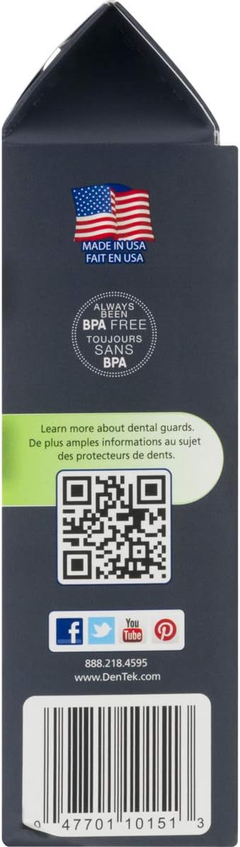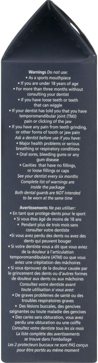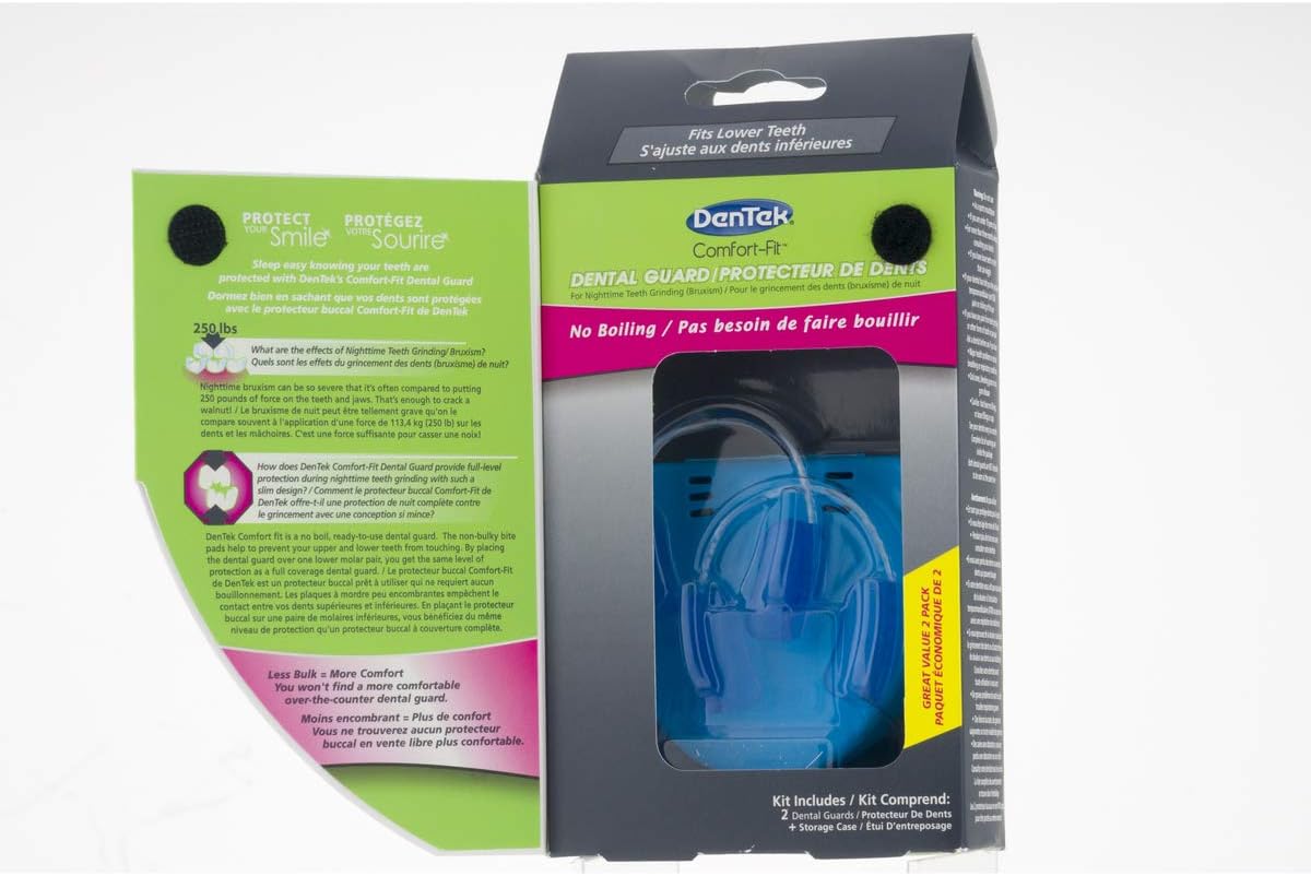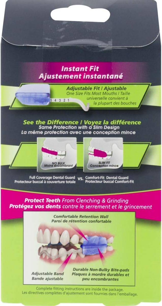 您夜间磨牙吗?您的妻子、丈夫或另一半是否抱怨磨牙声让他们难以入睡?DenTek(TM) Comfort-Fit 护齿器可以解决您的问题(以及他们的问题)。DenTek(TM) Comfort-Fit 护齿器佩戴方便,可以保护您的牙齿,不会感觉笨重。这款护齿器不含双酚A、乳胶和硅胶,无需煮沸或微波炉加热。DenTek(TM) Comfort-Fit 护齿器旨在保护您的牙齿免受夜间磨牙(磨牙症)的困扰,并消除随之而来的磨牙声。DenTek(TM) Comfort-Fit 护齿器为您的牙齿提供持久保护,配有 2 个护齿器和一个护齿器收纳盒。舒适有效的夜间磨牙保护,让您睡得更安稳。