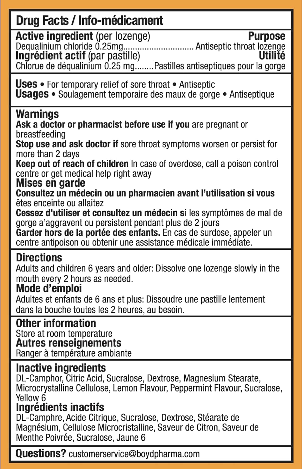 Dequadin 药用润喉糖 - 橙味 | 抗菌抗真菌,缓解咽喉痛和口腔溃疡 | 16 粒
