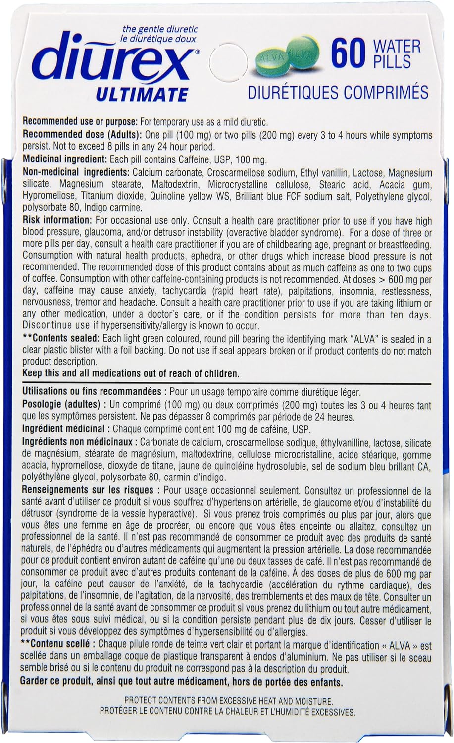 Diurex ULTIMATE 提供灵活的服用方式,每次服用一粒或两粒,提供暂时的轻度利尿缓解。它可缓解因年龄、饮食、生活方式、钠摄入量或单纯经前水肿引起的腹胀和水肿。
