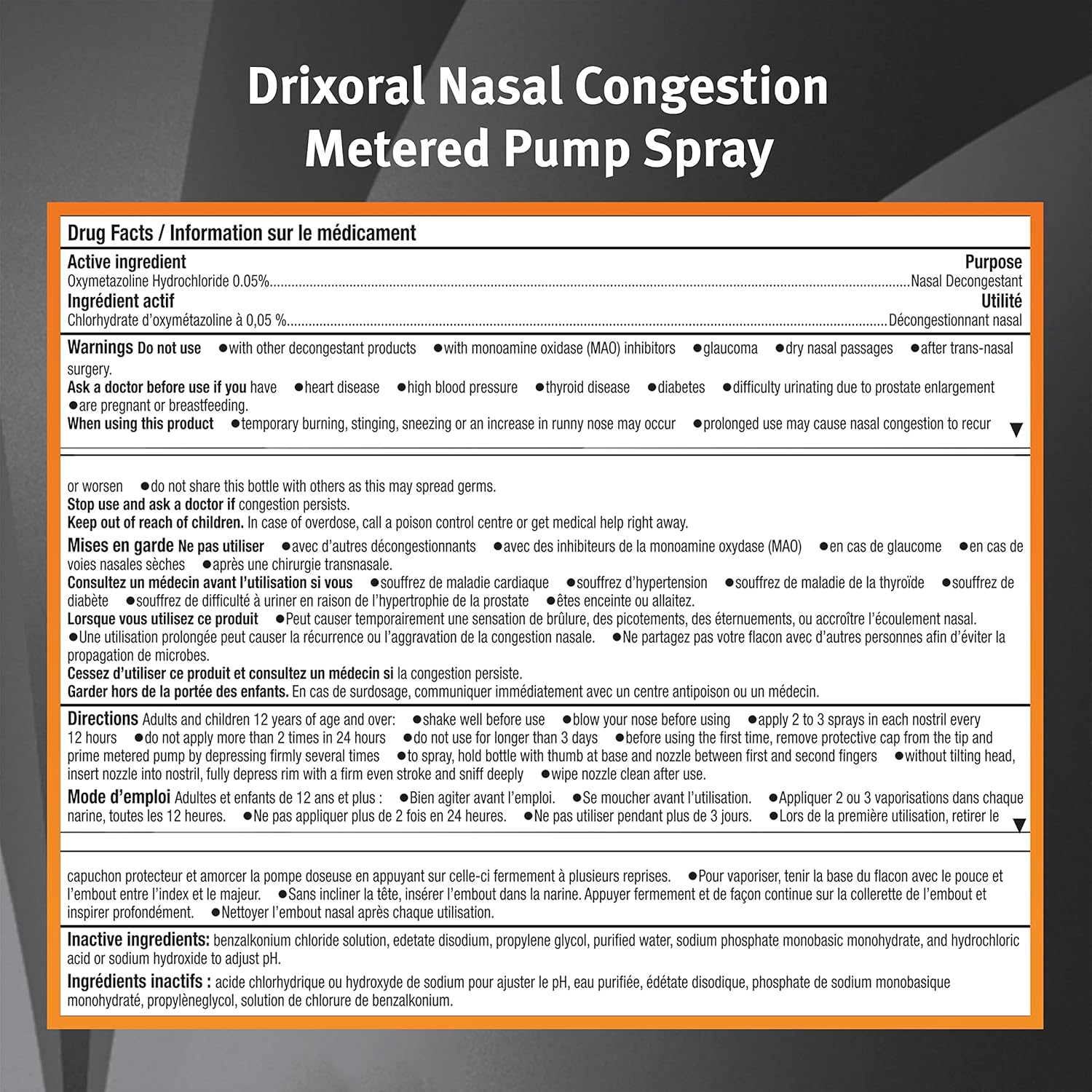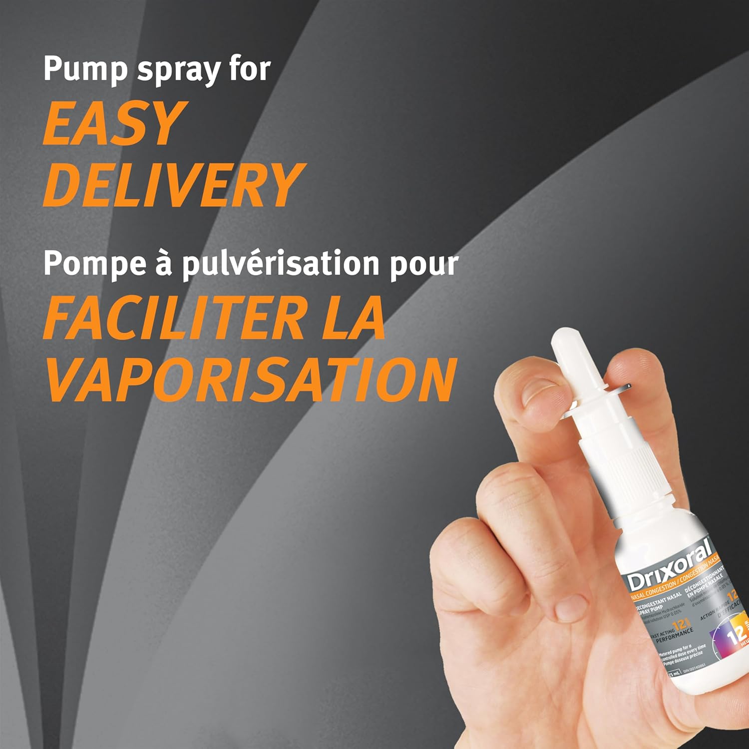 Drixoral 鼻塞喷雾有助于缓解感冒、花粉症或其他过敏引起的鼻塞、鼻窦充血和鼻腔压力。它能在您最需要的时候让您呼吸顺畅。它起效迅速,持续 12 小时,并配有定量泵,每次均可控制剂量。可暂时缓解感冒、花粉症或其他上呼吸道过敏引起的鼻塞和鼻窦压力。为确保本产品适合您,请务必阅读并遵循标签说明。